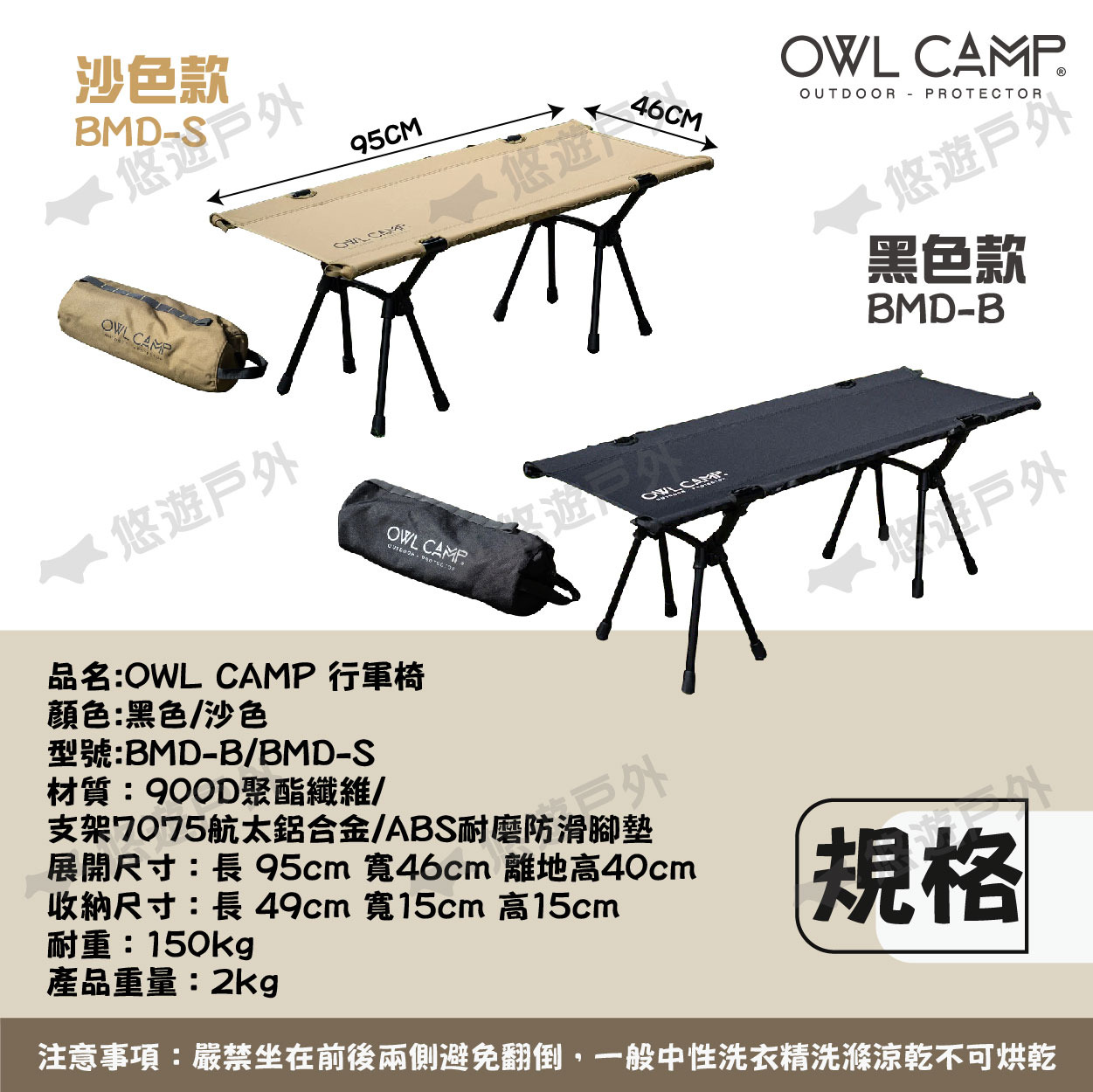 【悠遊戶外】OWL CAMP 行軍椅 黑色/沙色 BMD-B/S