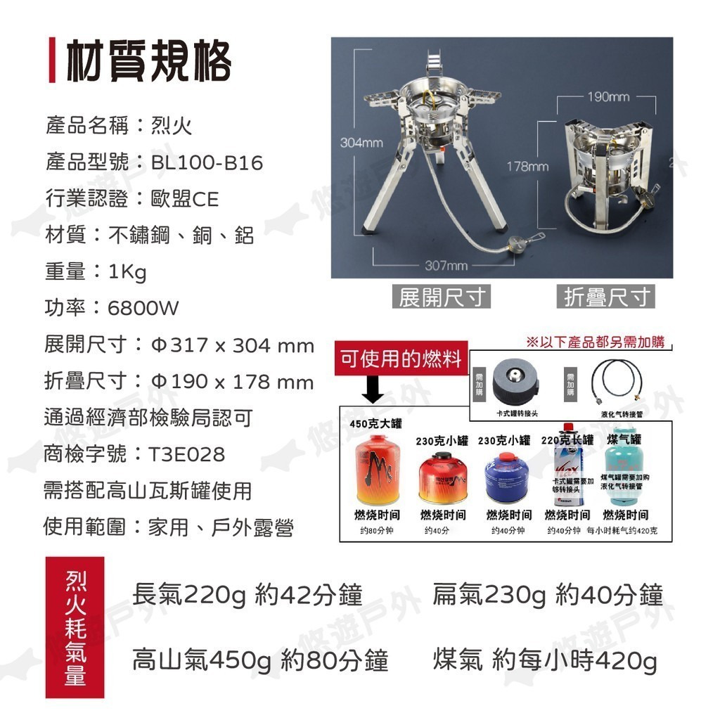 【悠遊戶外】步林烈火爐 Bulin BL100-B16