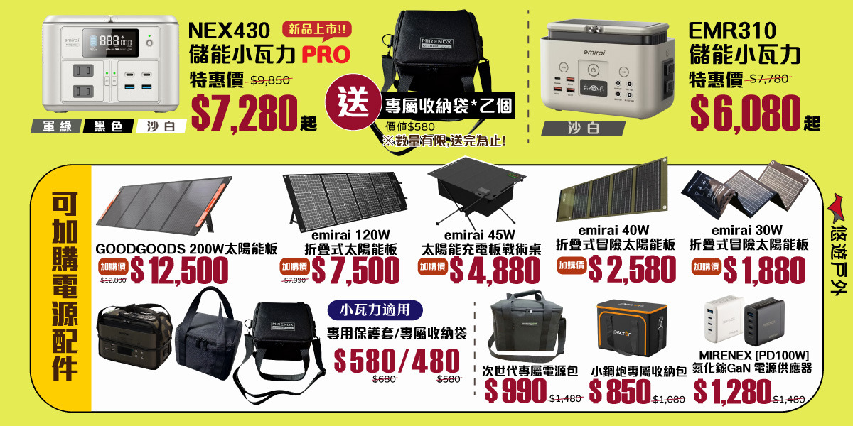 【日本emirai】儲能小瓦力PRO 三色 NEX430 戶外電源 迷你行動電源 Type-C 登山 露營 悠遊戶外