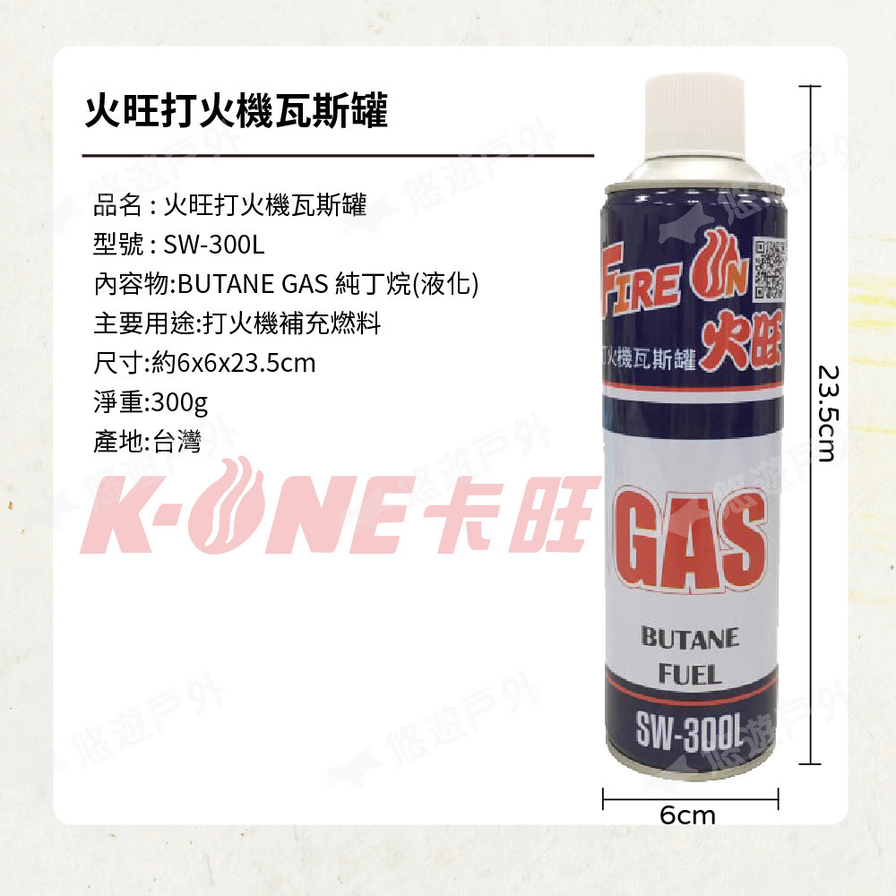 【悠遊戶外】卡旺 火旺打火機瓦斯罐 SW-300L
