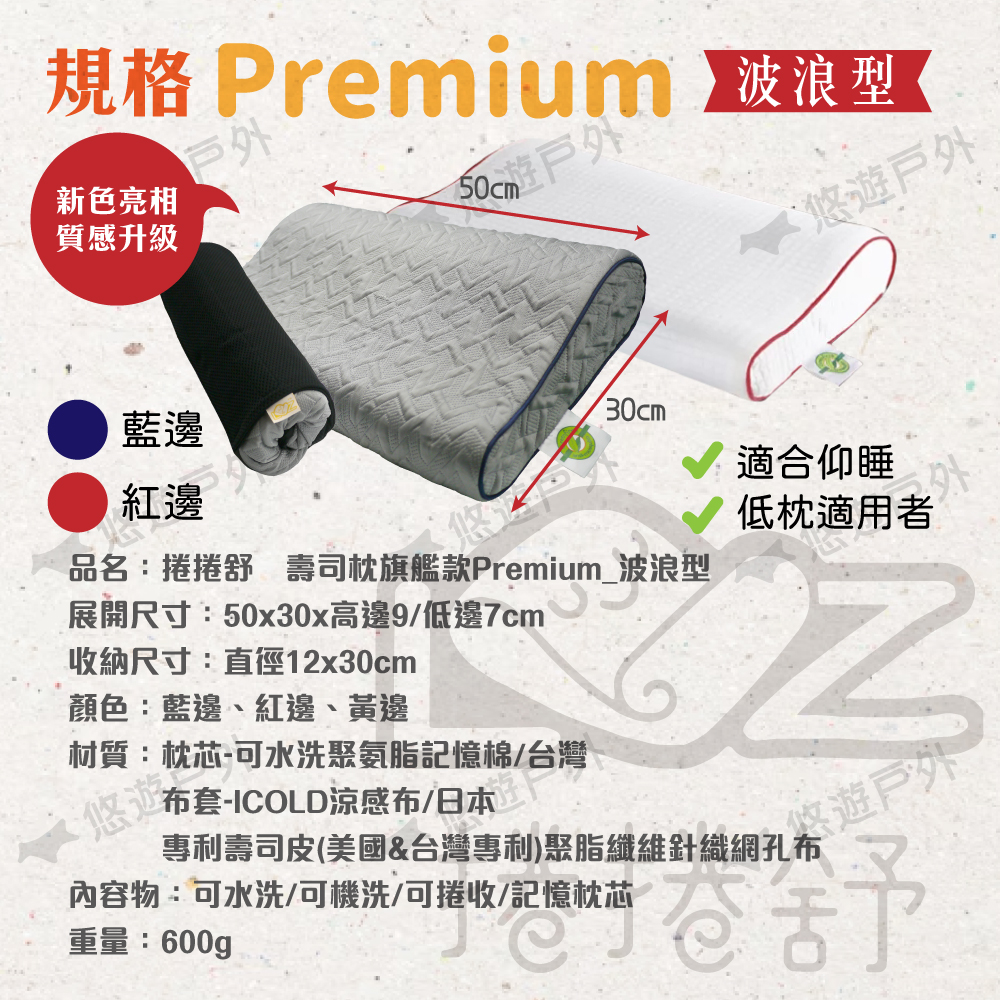 品名:捲捲舒 壽司枕 Premium 波浪型 夢幻旗艦款
