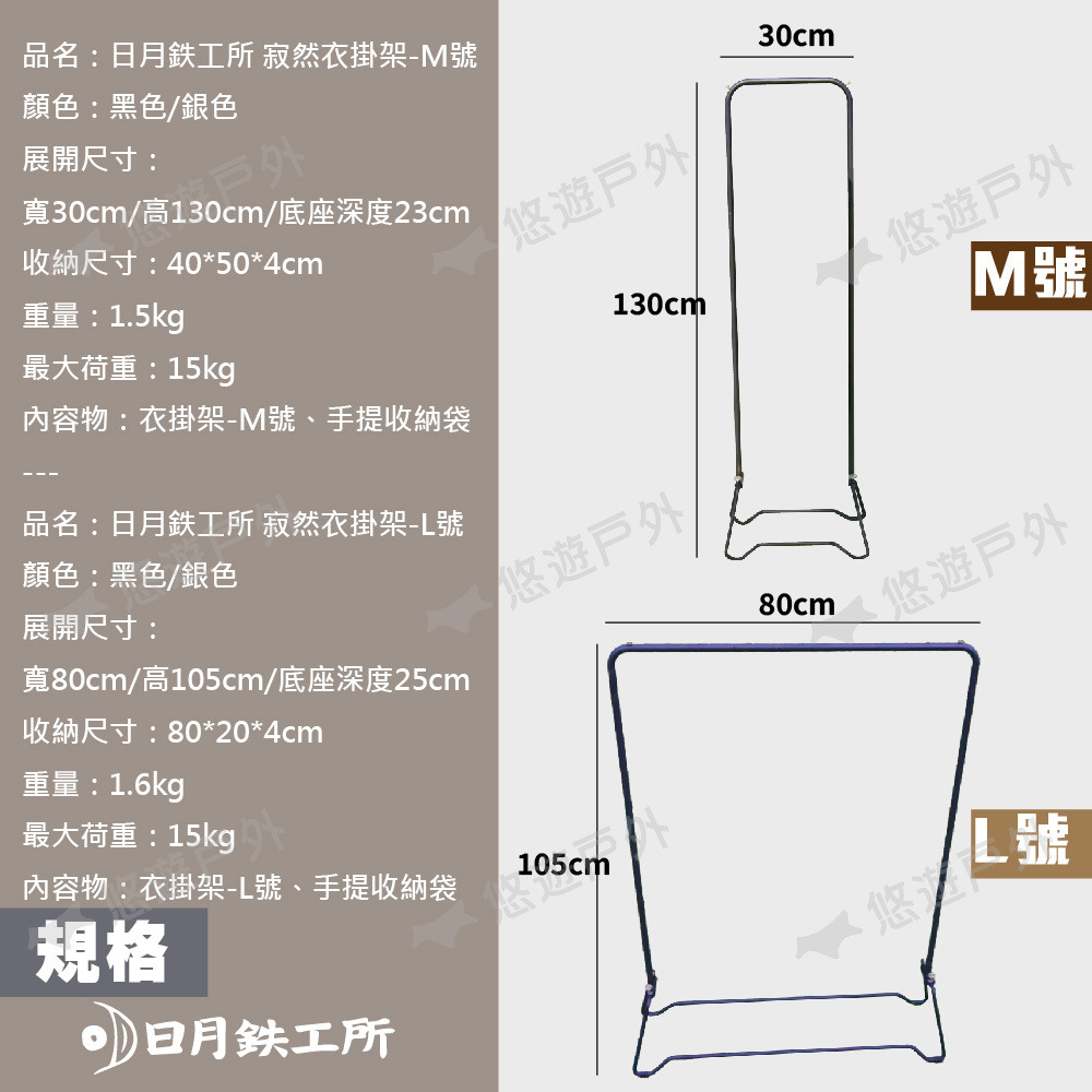 【日月鉄工所】寂然衣掛架 M號/L號 黑色/銀色 衣帽架 吊衣架 衣架 掛衣架 落地衣架 開放式衣架 露營 悠遊戶外