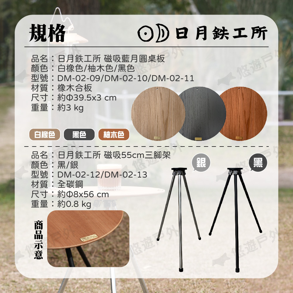 【悠遊戶外】日月鉄工所 磁吸藍月圓桌板+磁吸55cm三腳架