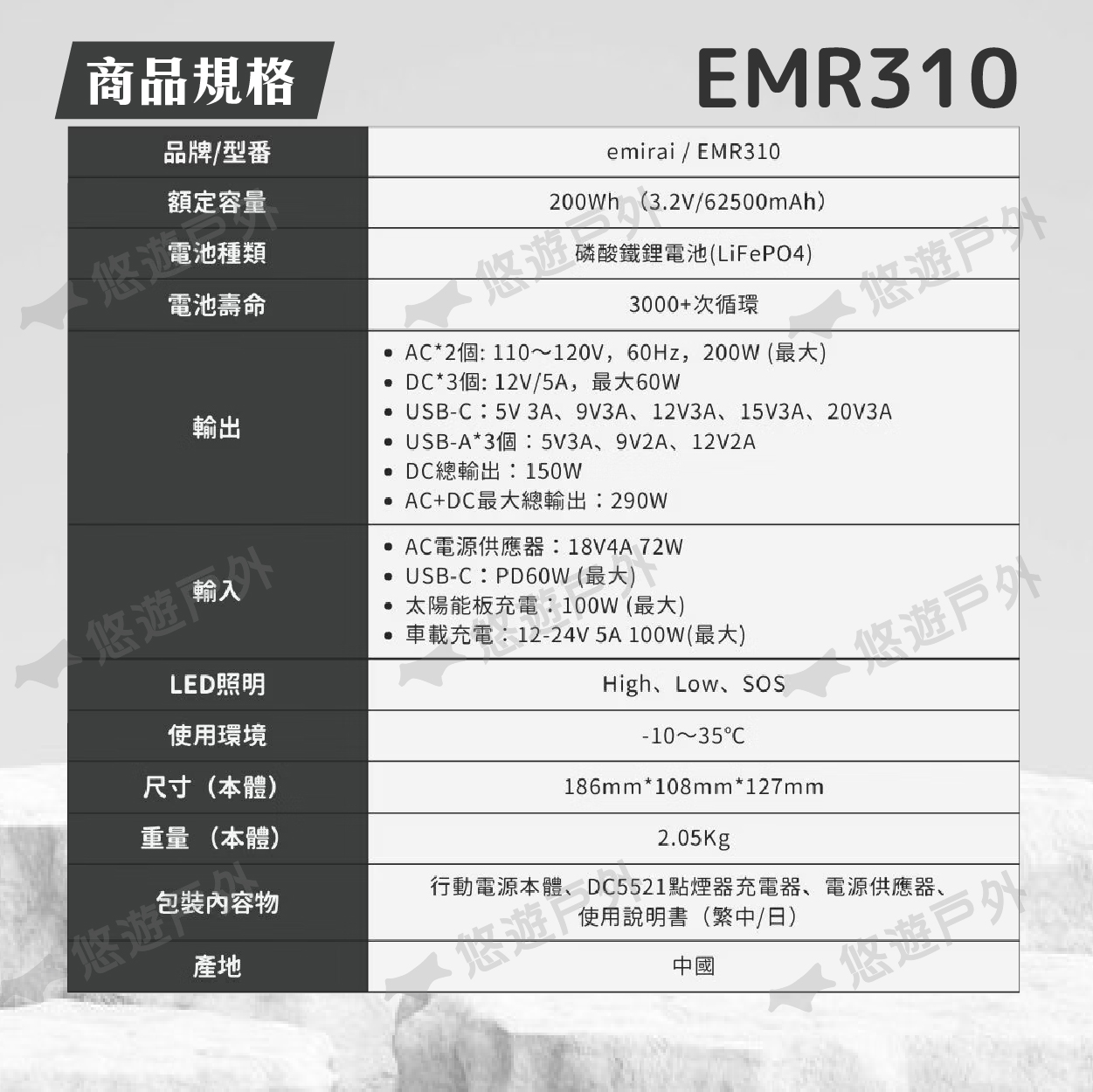 【悠遊戶外】emirai 儲能小瓦力 200Wh/290W EMR310