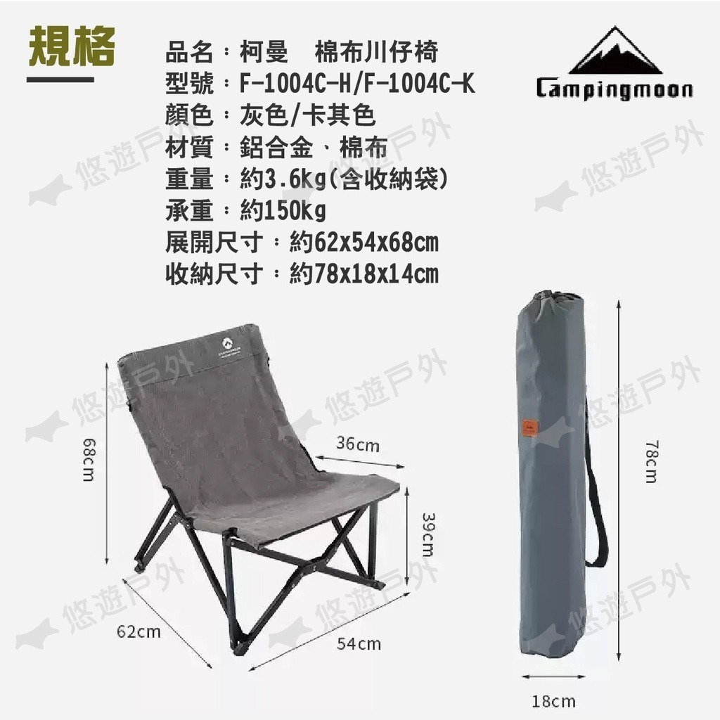 【柯曼】棉布川仔椅 F-1004C-H.K 灰/卡其 無扶手 鋁合金 承重150kg 折合椅 釣魚椅 露營 悠遊戶外