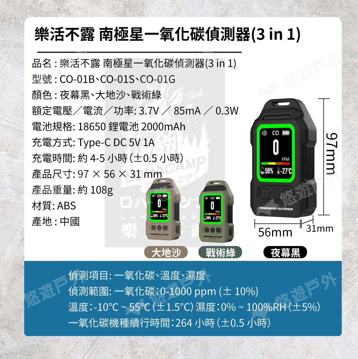 品名 : 樂活不露 南極星一氧化碳偵測器(3 in 1)