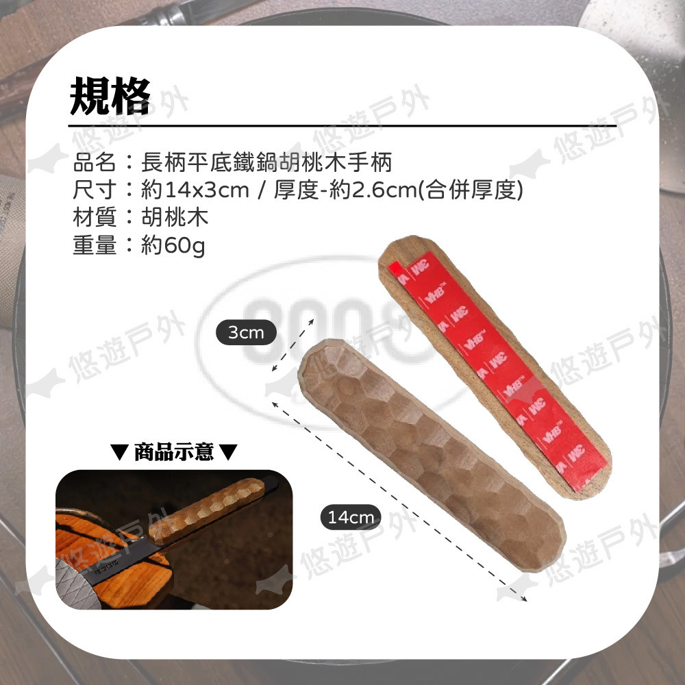 【悠遊戶外】韓國800度C 長柄平底鐵鍋胡桃木手柄