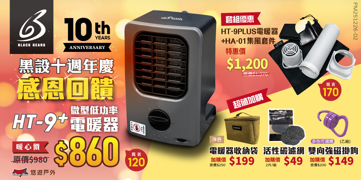 【悠遊戶外】BLACK GEARS黑設 HT-9 PLUS 微型低功率電暖器