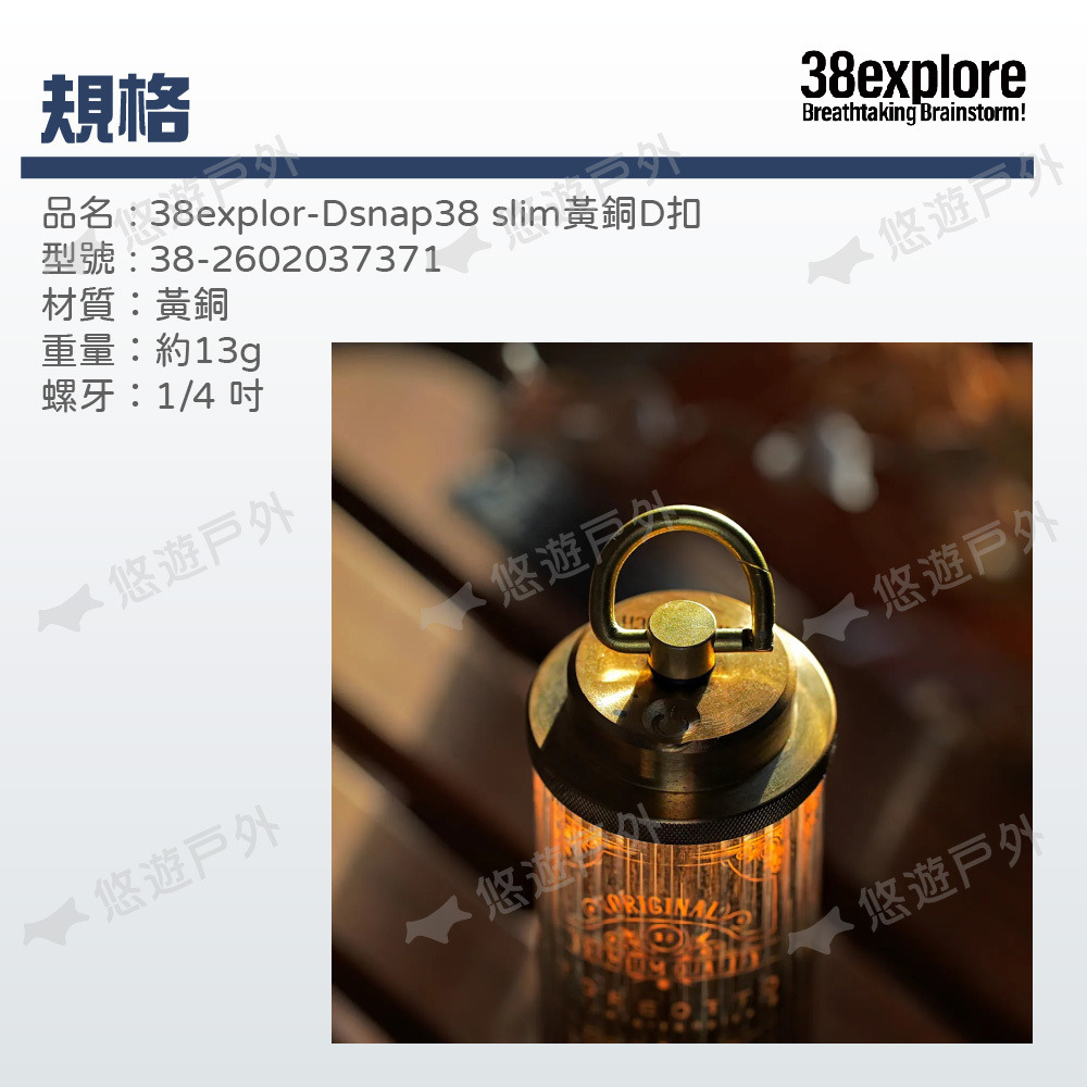 【38explore】Dsnap38/slim 黃銅D扣 可作為登山扣 可吊掛 配件 38燈 野炊 登山 露營 悠遊戶外