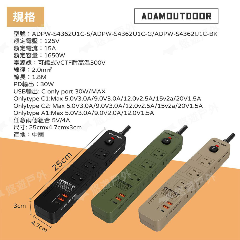 【悠遊戶外】ADAMOUTDOOR 家用款4開6插30WPD延長線1.8M 三色