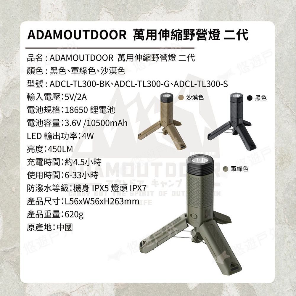【悠遊戶外】ADAMOUTDOOR萬用伸縮野營燈 (二代)