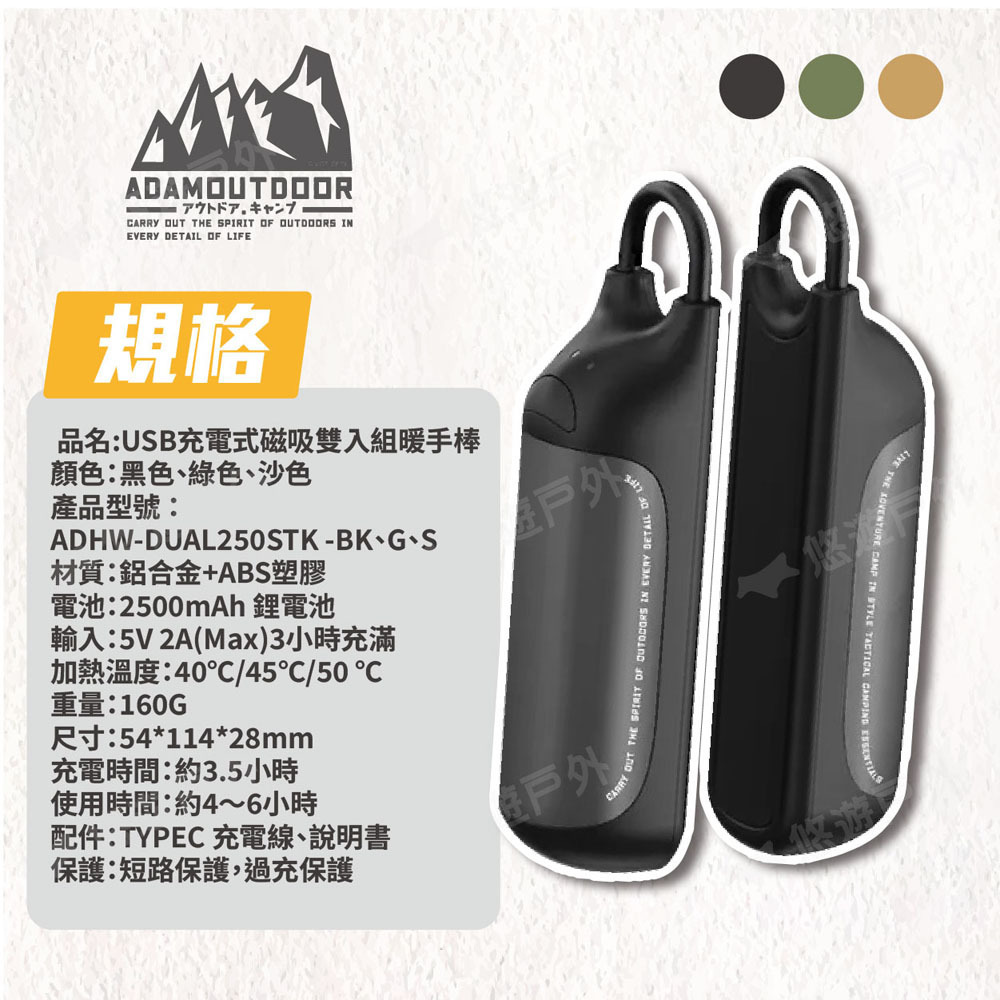 【悠遊戶外】ADAMOUTDOOR USB充電式磁吸雙入組暖手棒