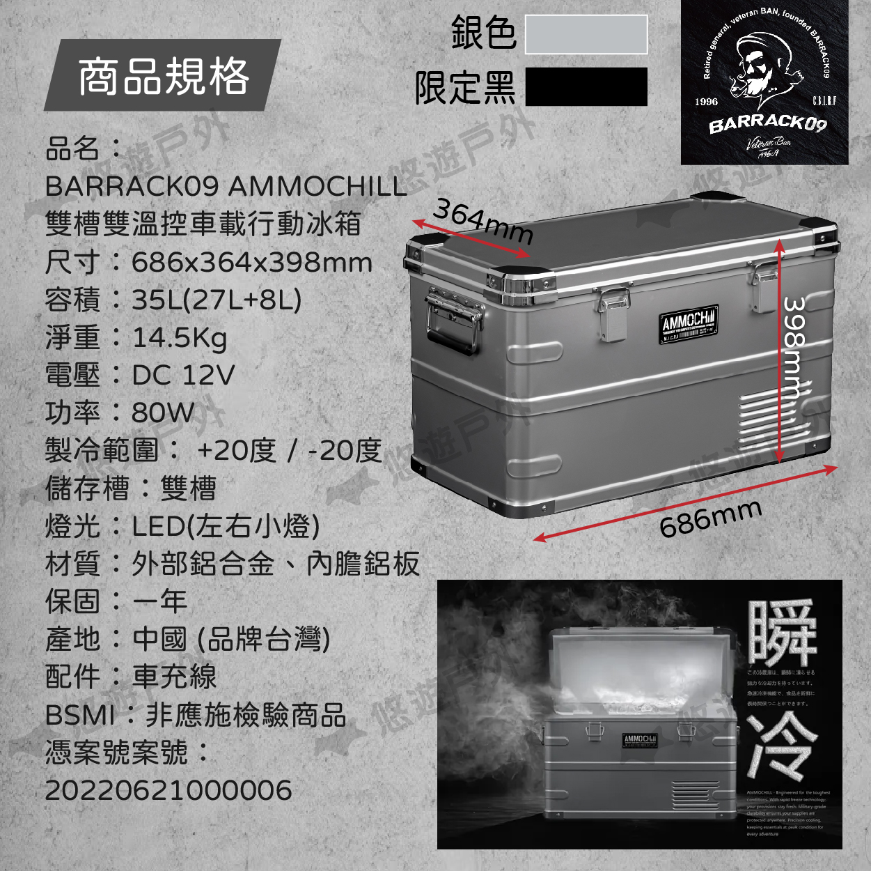 品名:BARRACK09 AMMOCHILL 雙槽雙溫控車載行動冰箱