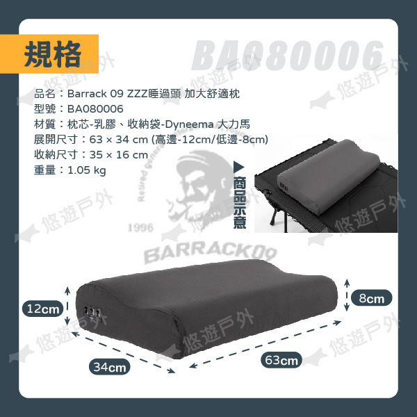【悠遊戶外】Barrack 09 ZZZ睡過頭 加大舒適枕 BA080006