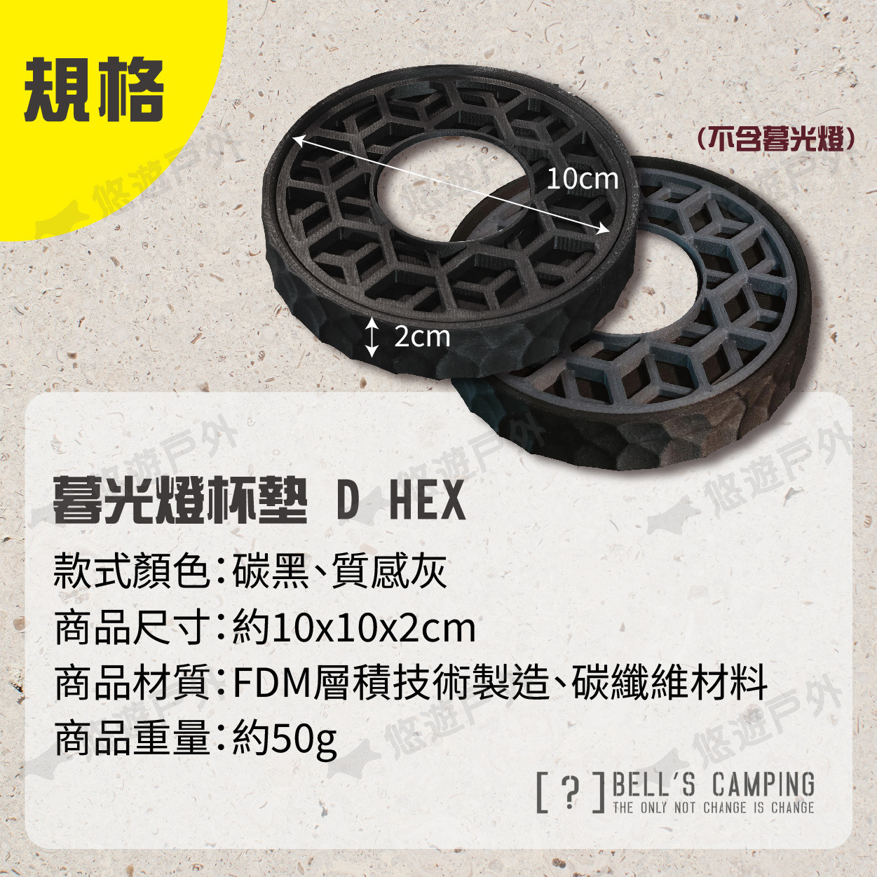 【悠遊戶外】Bell's Camping 暮光燈杯墊 D HEX 質感灰/碳灰 D-HEX-GY/BK