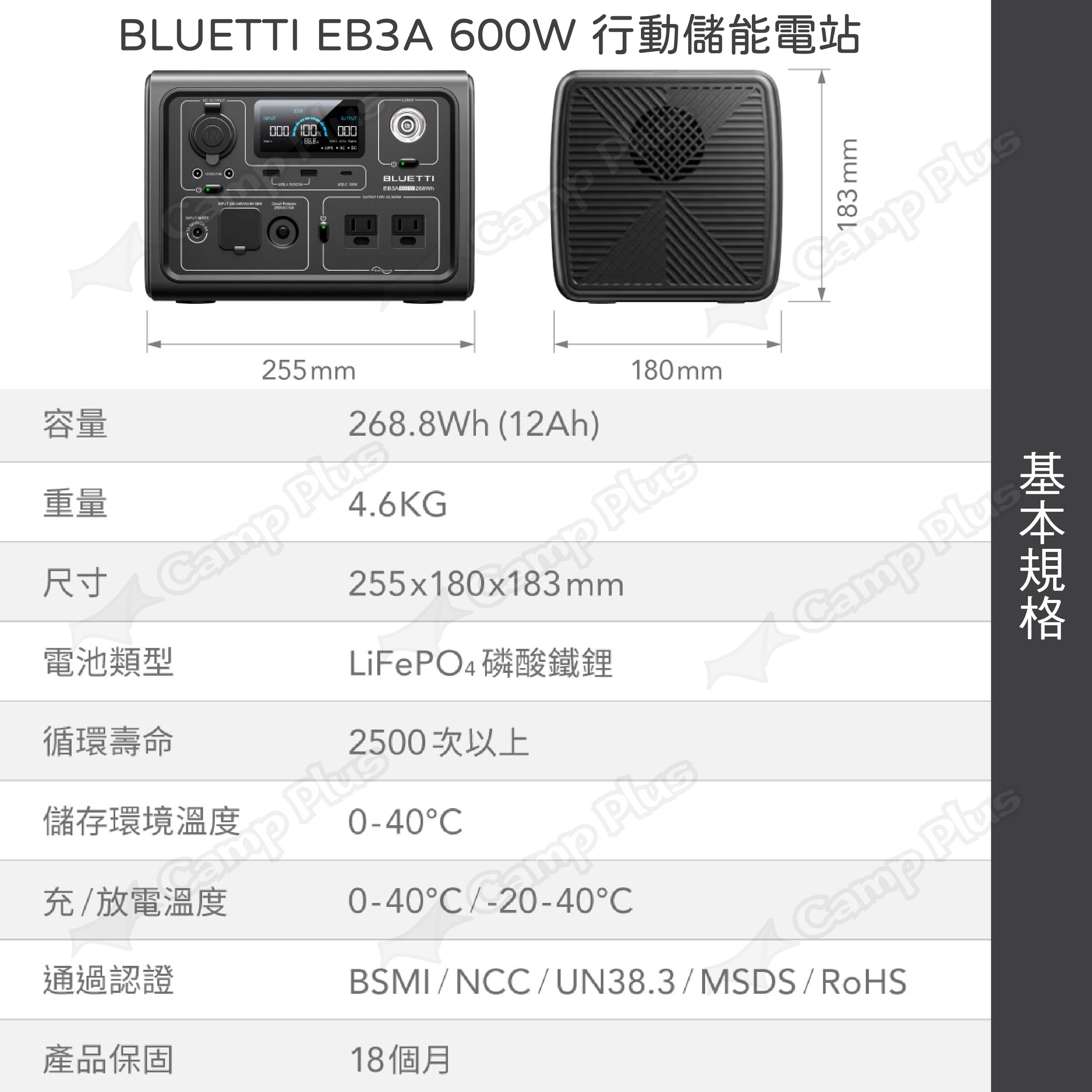 【BLUETTI】EB3A 行動儲能電站600W 儲能電源 戶外電源 移動電源 充電器 發電機 車宿露營 悠遊戶外