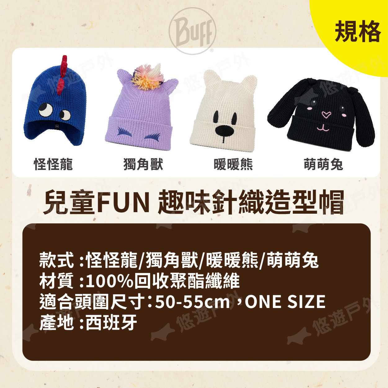品名:BUFF 兒童FUN 趣味針織造型帽