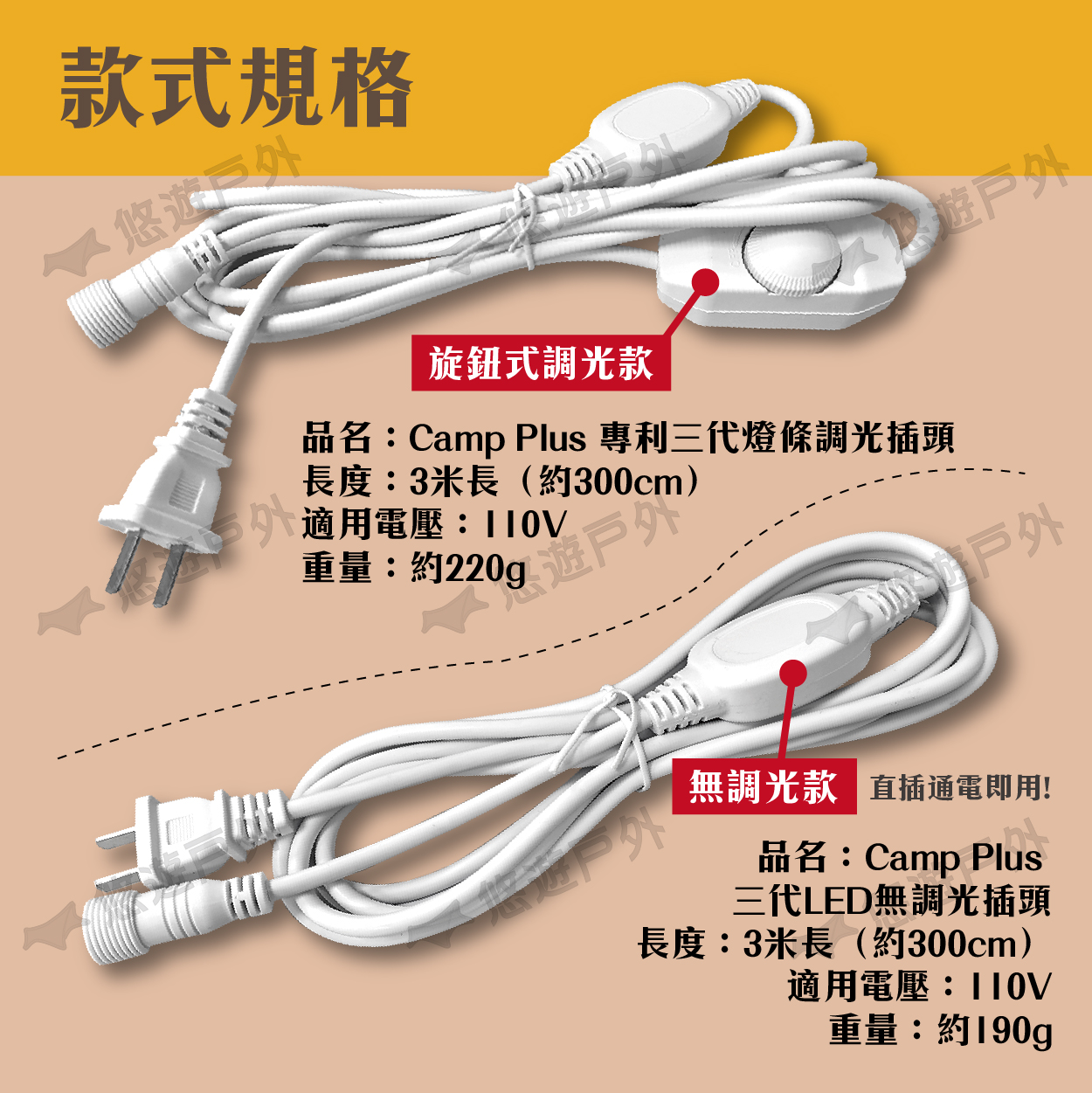 【悠遊戶外】旋鈕式調光插頭/ LED無調光插頭_3M