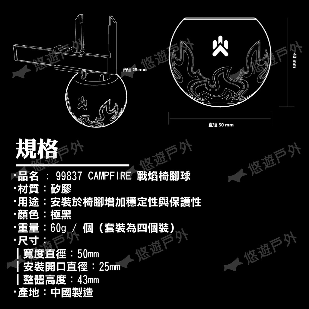 ・品名 : 99837 CAMPFIRE 戰焰椅腳球