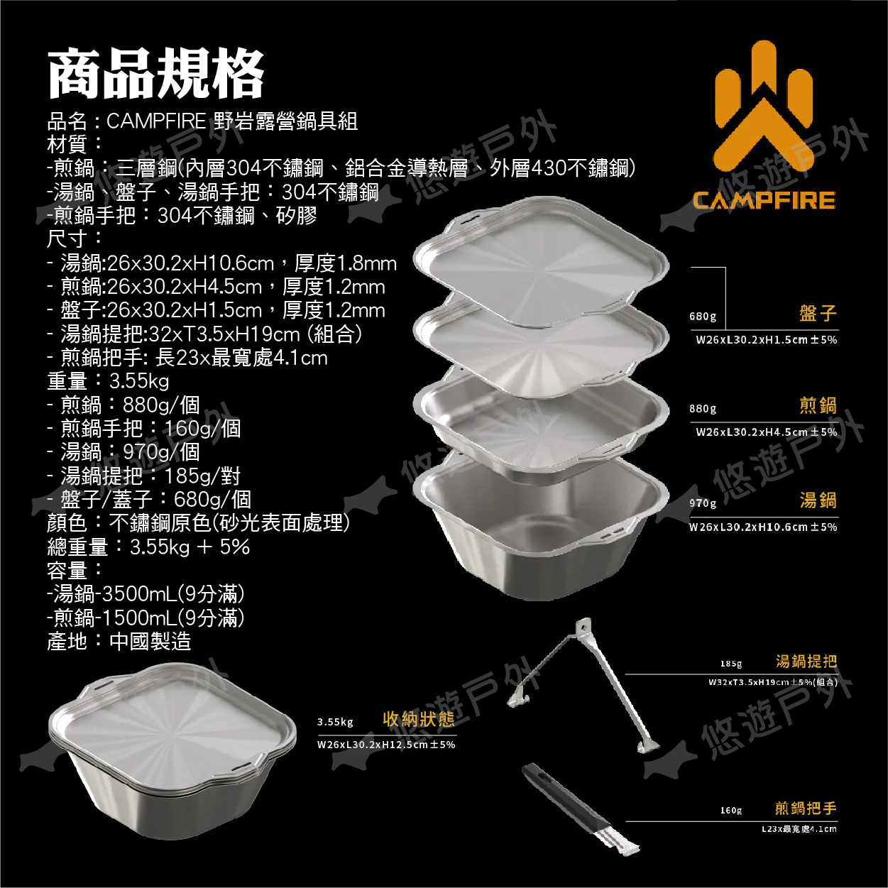 品名 : CAMPFIRE 野岩露營鍋具組