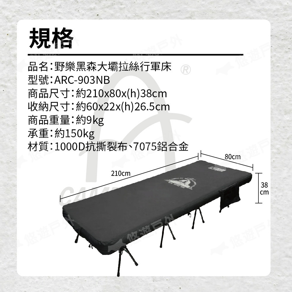 【悠遊戶外】Camping Ace 野樂 黑森大壩拉絲行軍床 ARC-903NB