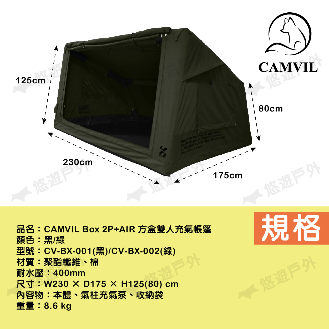 【悠遊戶外】CAMVIL Box 2P+AIR 方盒雙人充氣帳篷 CV-BX-001 / CV-BX-002