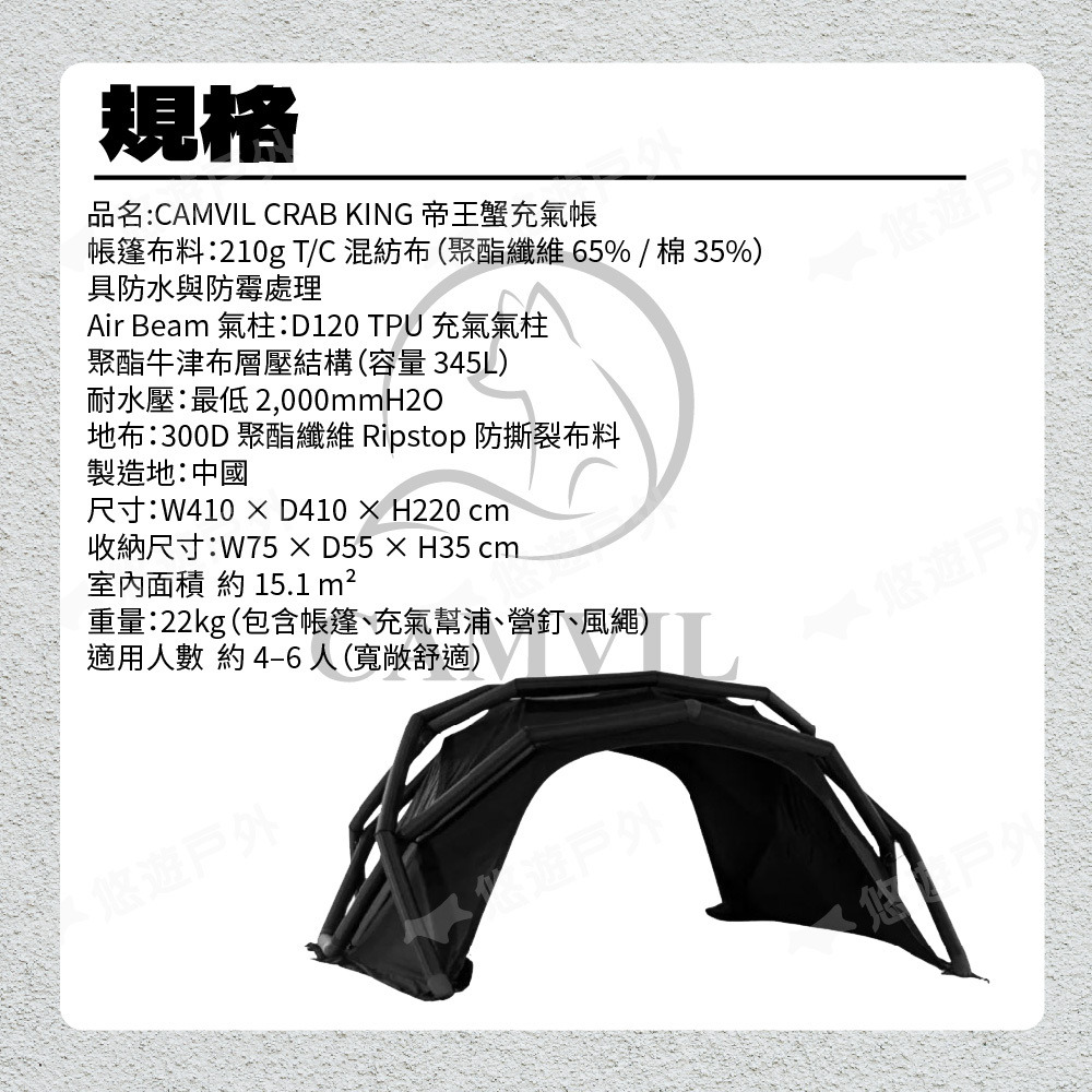 【悠遊戶外】CAMVIL CRAB KING 帝王蟹充氣帳 4人帳