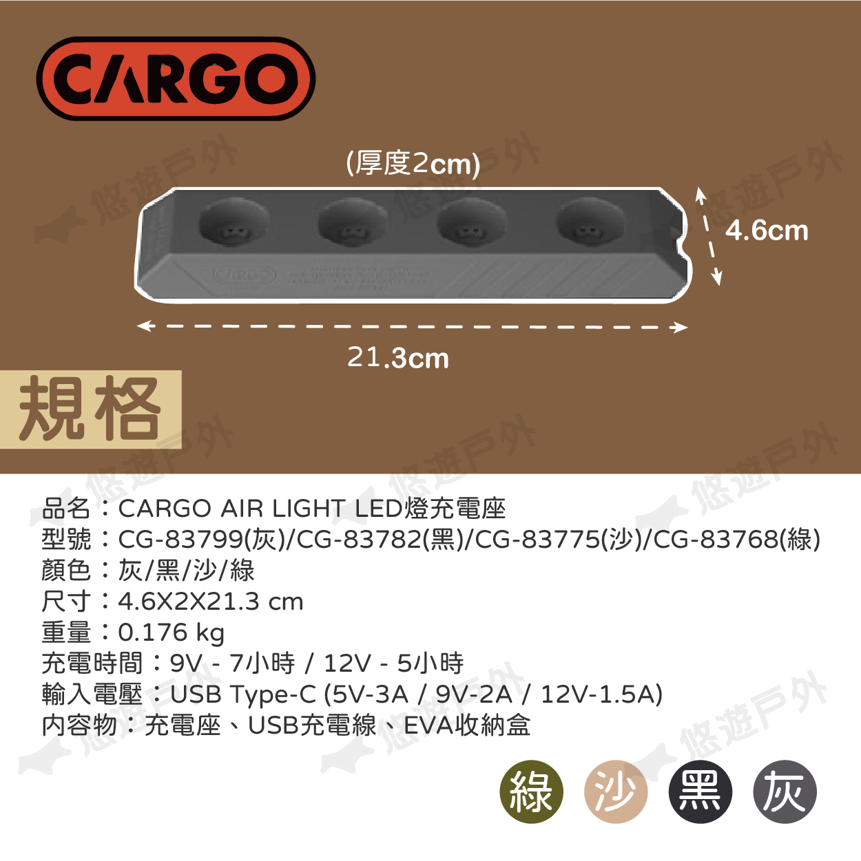 CARGO 專為戶外活動設計,超輕量AIR LIGHT LED燈的專屬充電座 🔋🔋