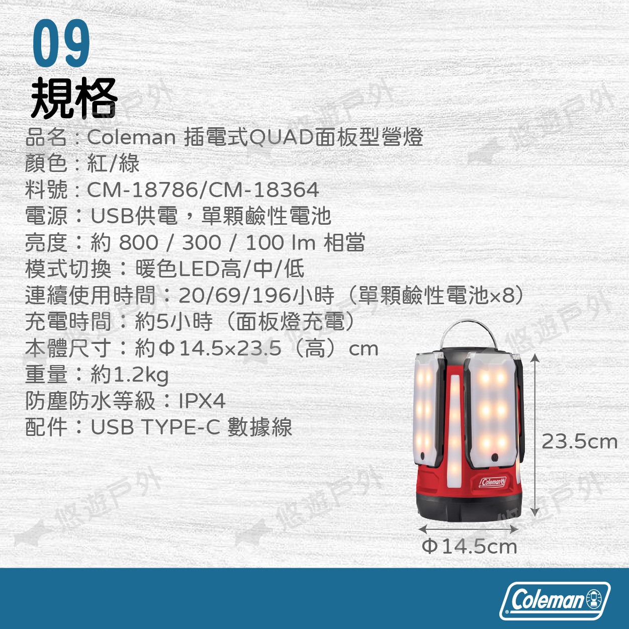 【悠遊戶外】Coleman 插電式QUAD面板型營燈 紅/綠