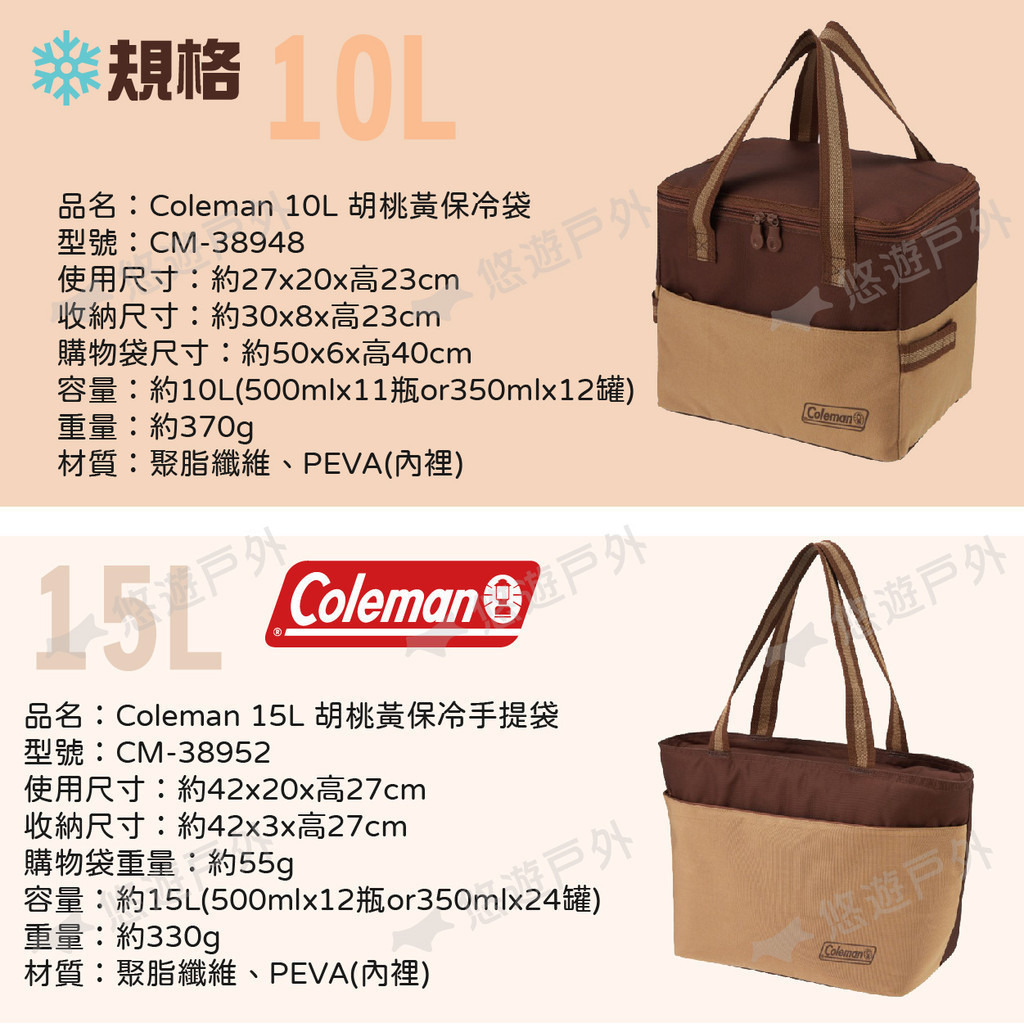【Coleman】胡桃黃保冷袋 10L/15L CM-38948/38952 保冷手提袋 附環保袋 露營 悠遊戶外