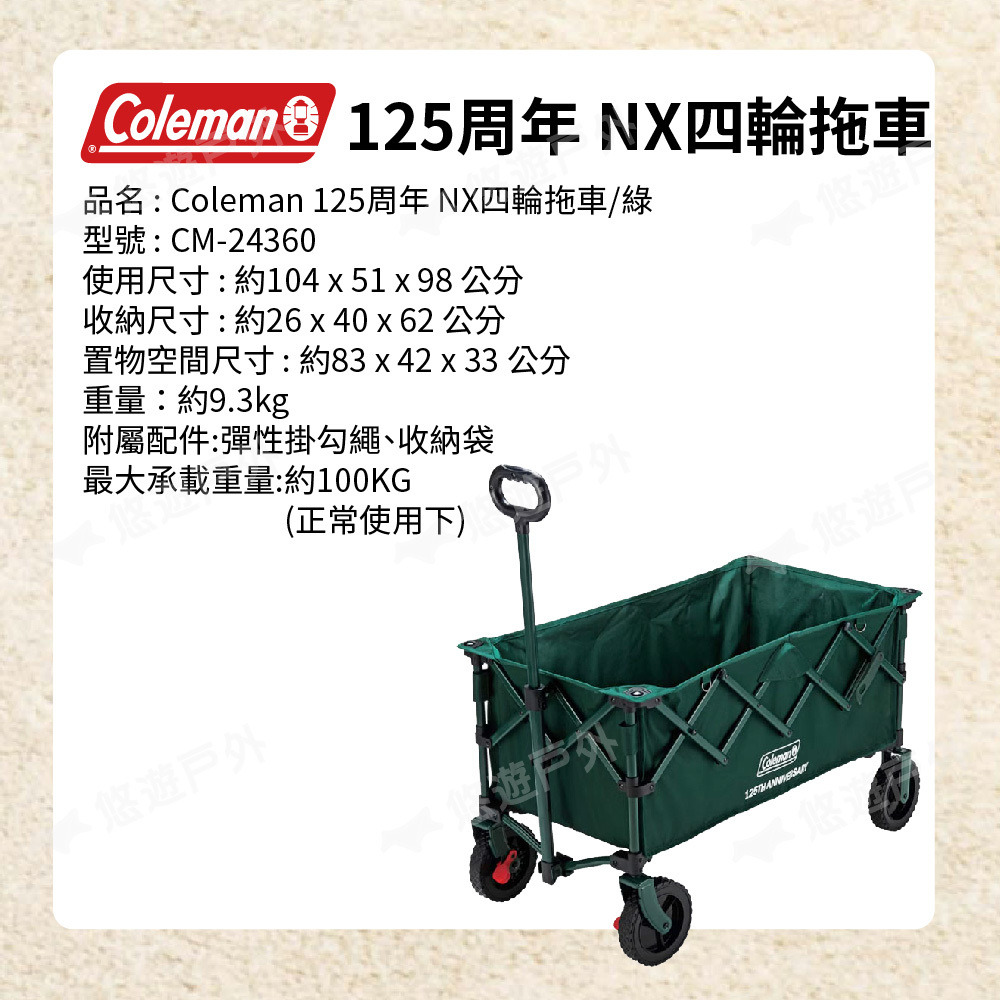 【悠遊戶外】Coleman 125周年 NX四輪拖車/綠