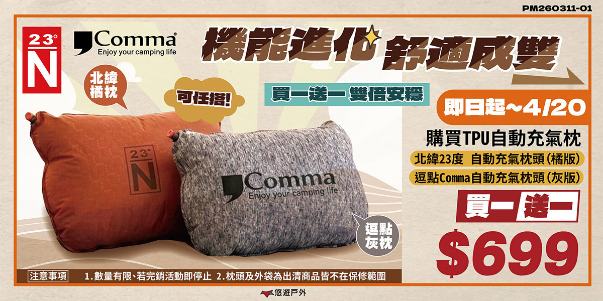 【悠遊戶外】Comma 自動充氣枕頭-灰