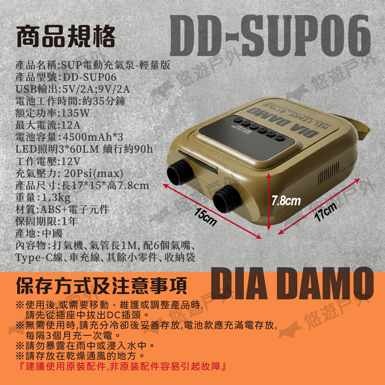 【DIA DAMO迪達蒙】SUP電動充氣泵 DD-SUP06 輕量版 充氣帳篷打氣機 幫浦 充氣 配件 露營 悠遊戶外