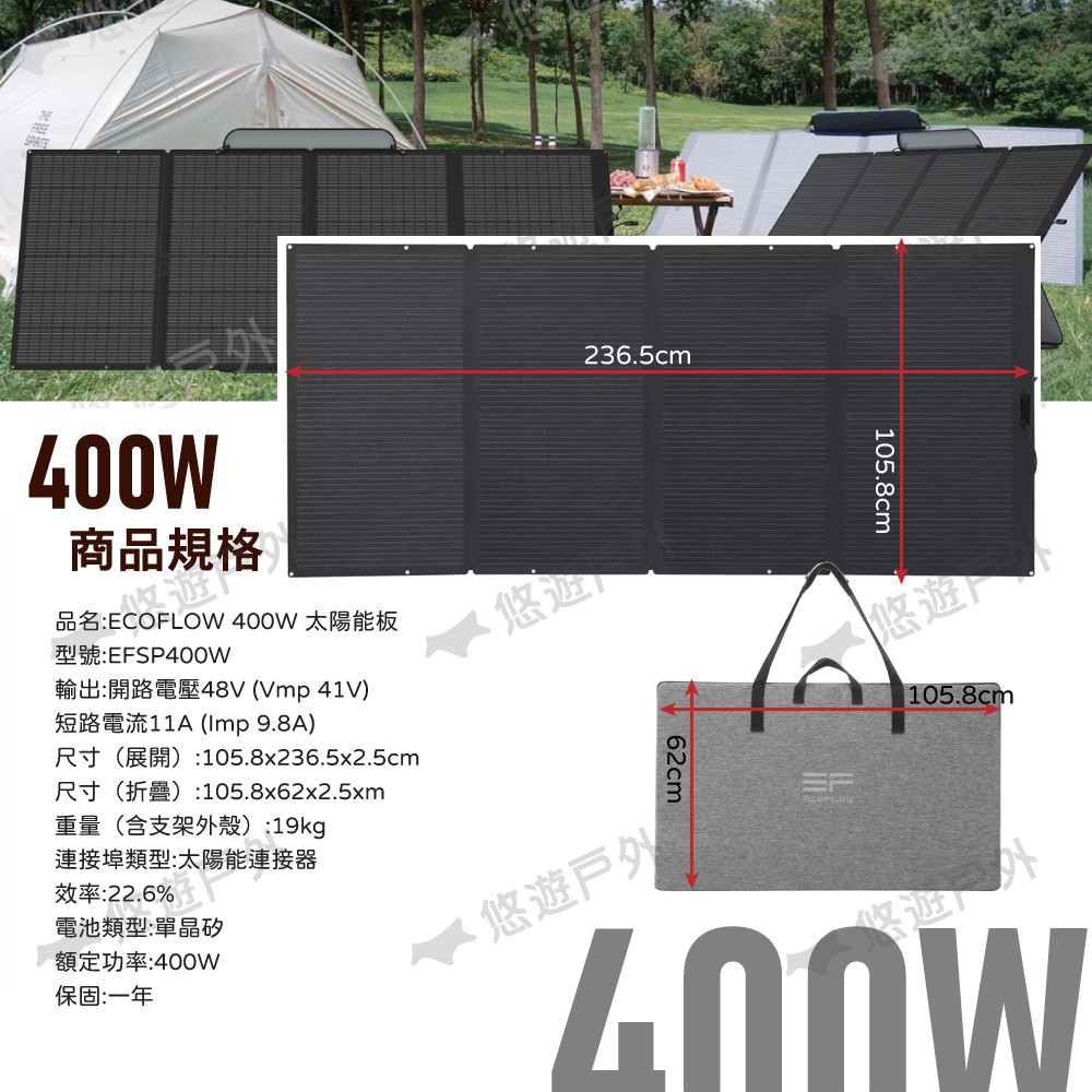 【悠遊戶外】ECOFLOW 400W/220W/160W/110W 太陽能板