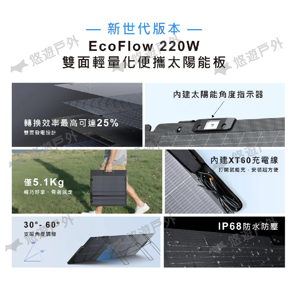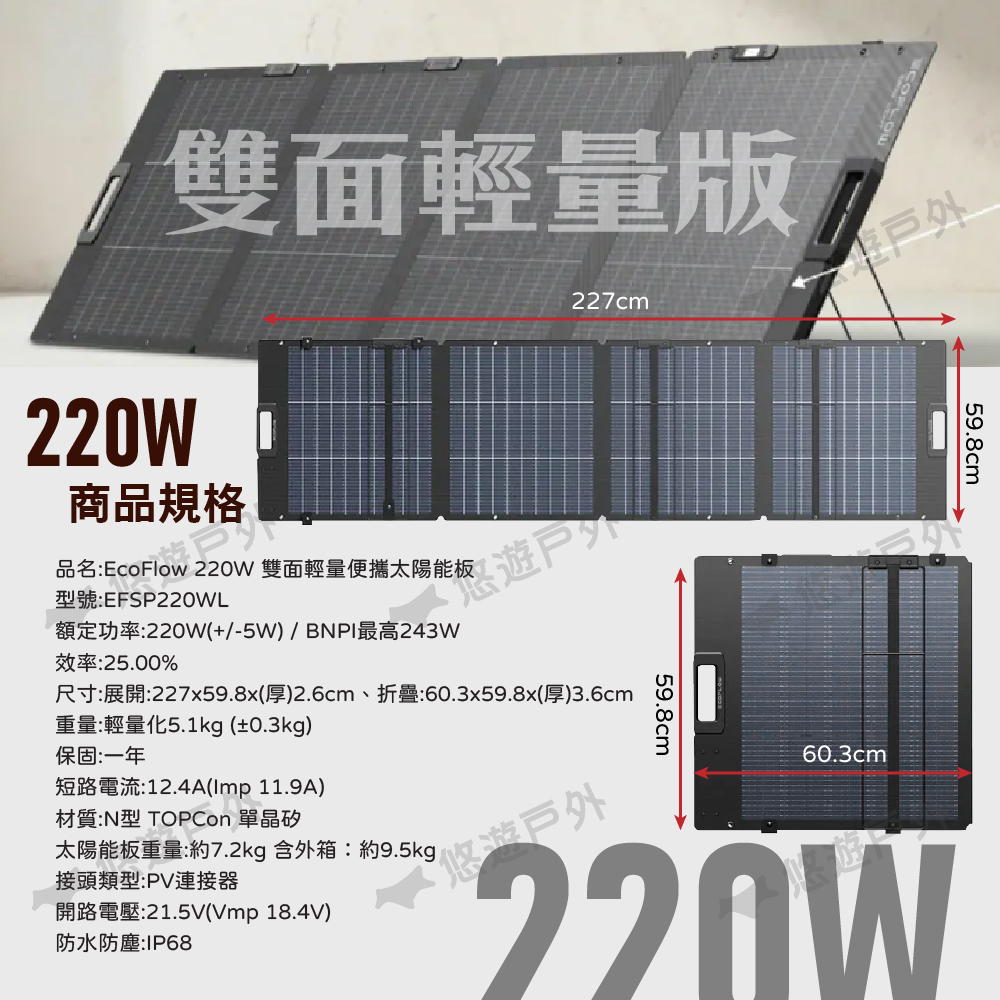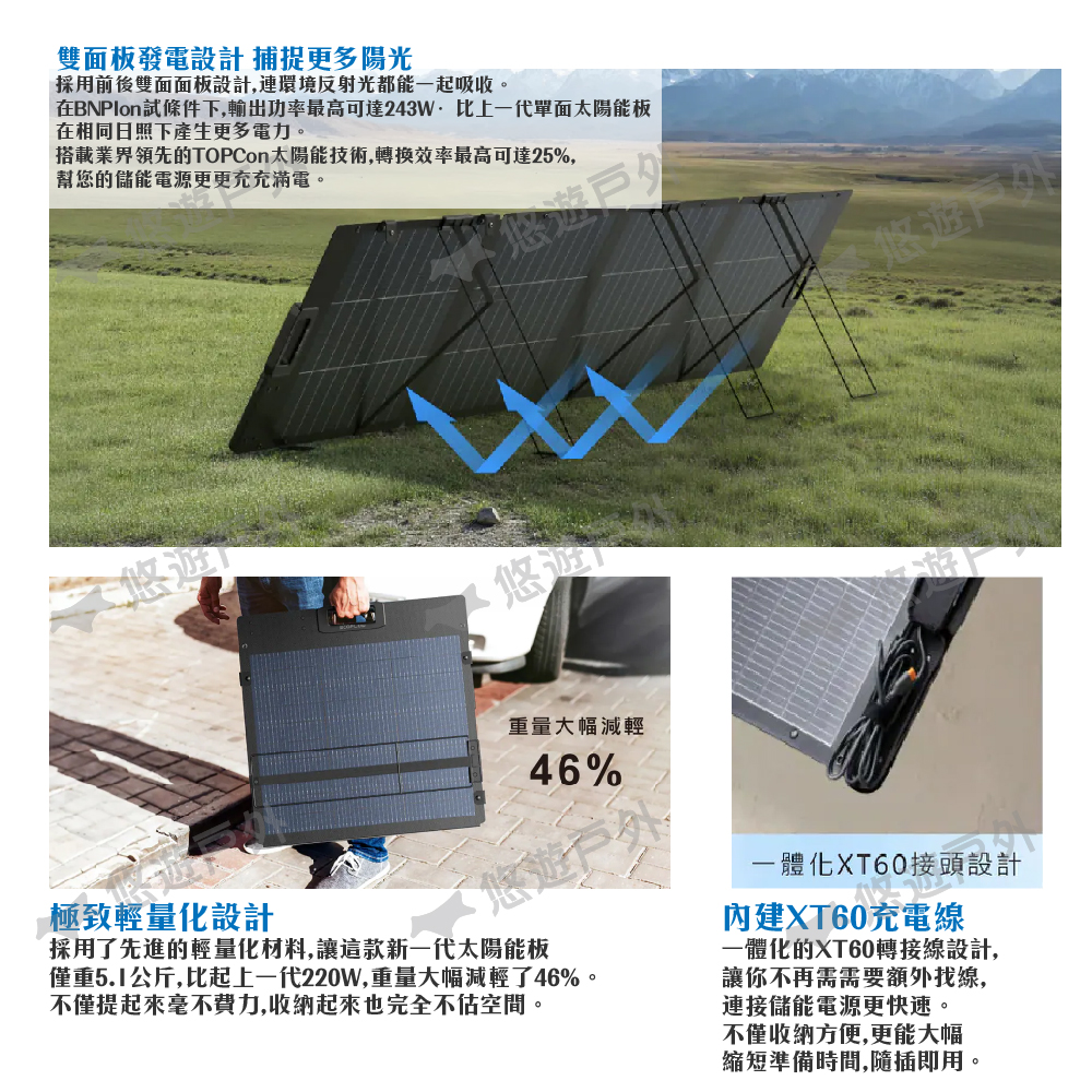 品名:EcoFlow 220W 雙面輕量便攜太陽能板