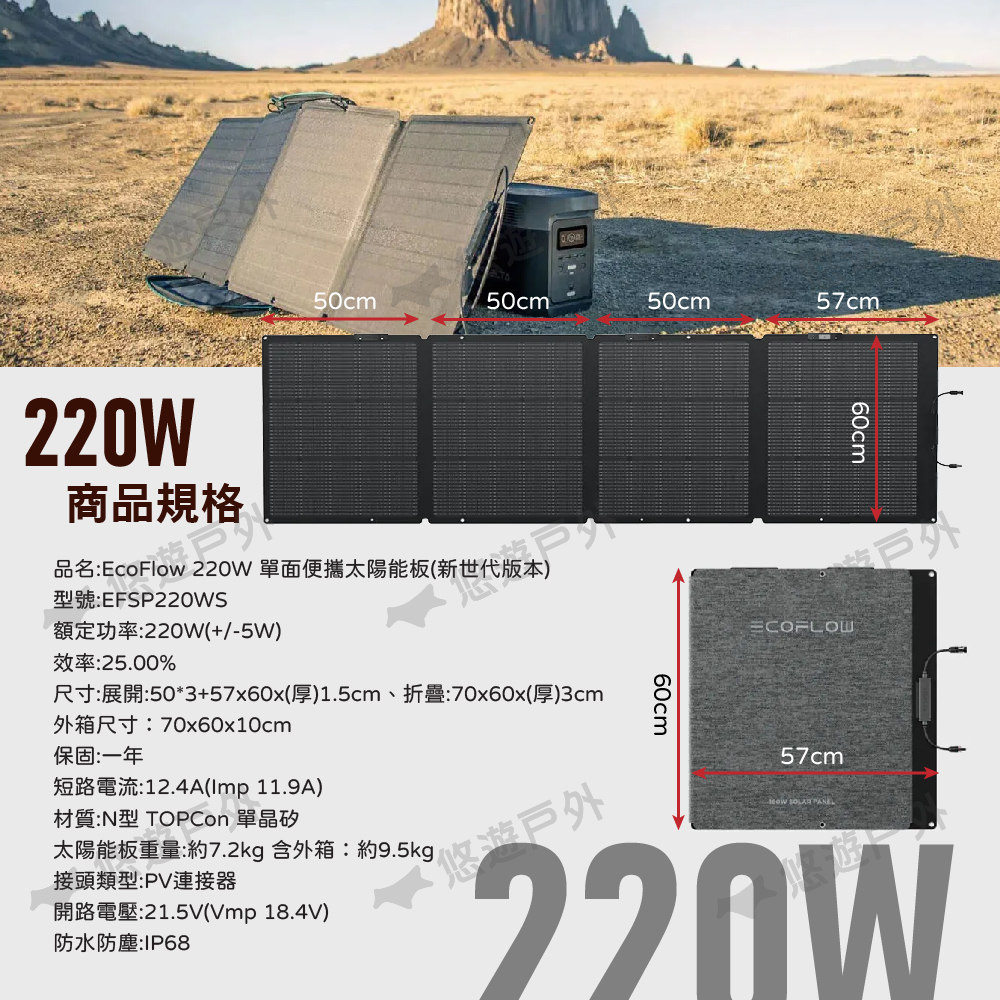 品名:EcoFlow 220W 單面便攜太陽能板(新世代版本)