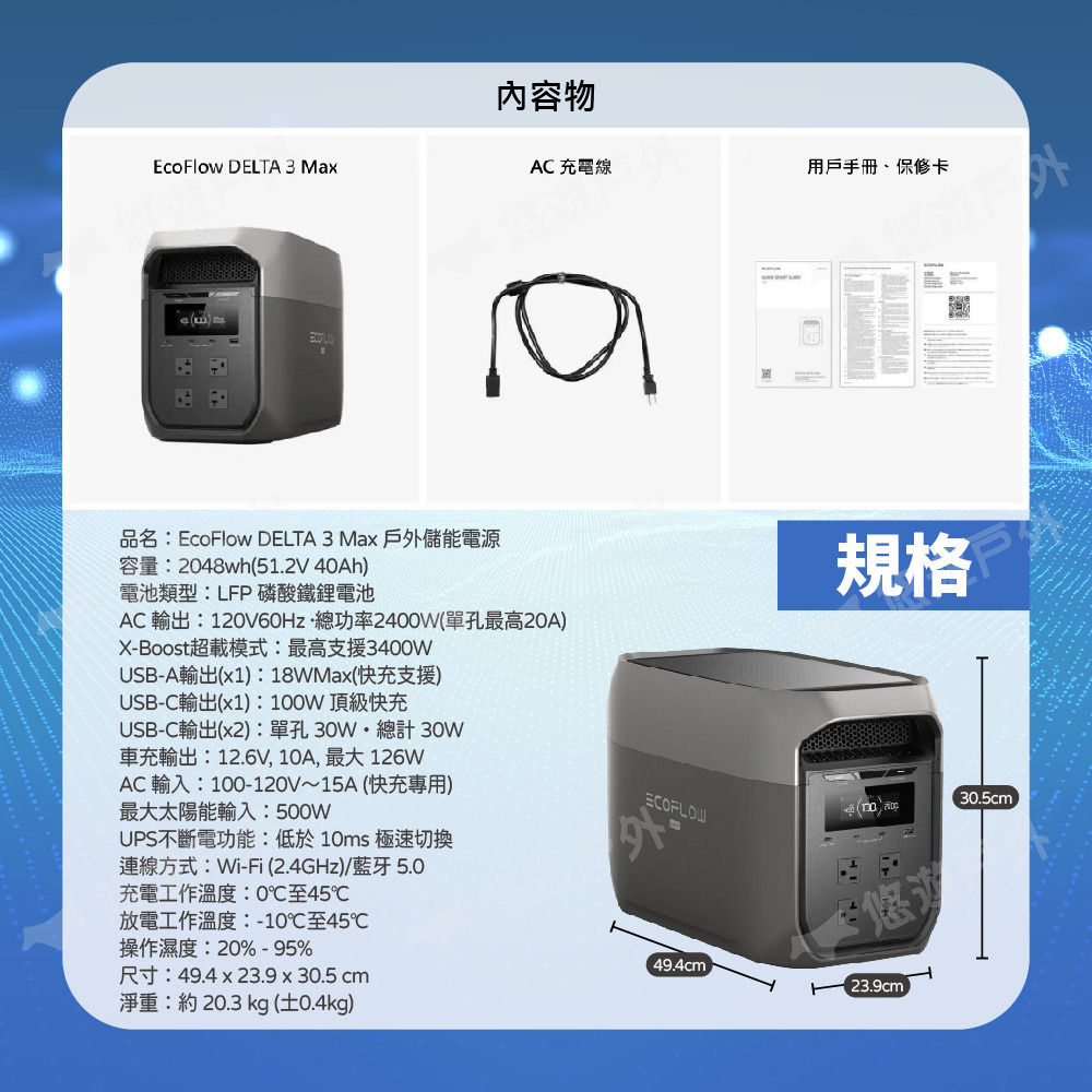 【EcoFlow】DELTA 3 Max 戶外儲能電源 EFDT3-M 移動電源 電池 戶外電源 車露 露營 悠遊戶外