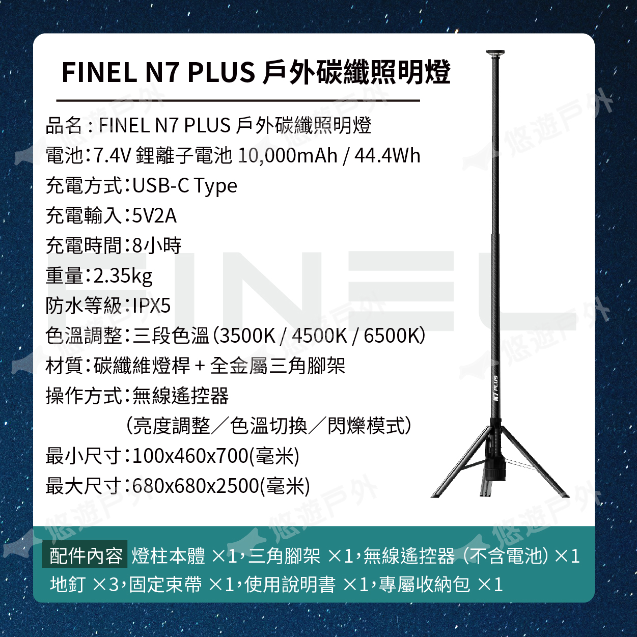 品名 : FINEL N7 PLUS 戶外碳纖照明燈