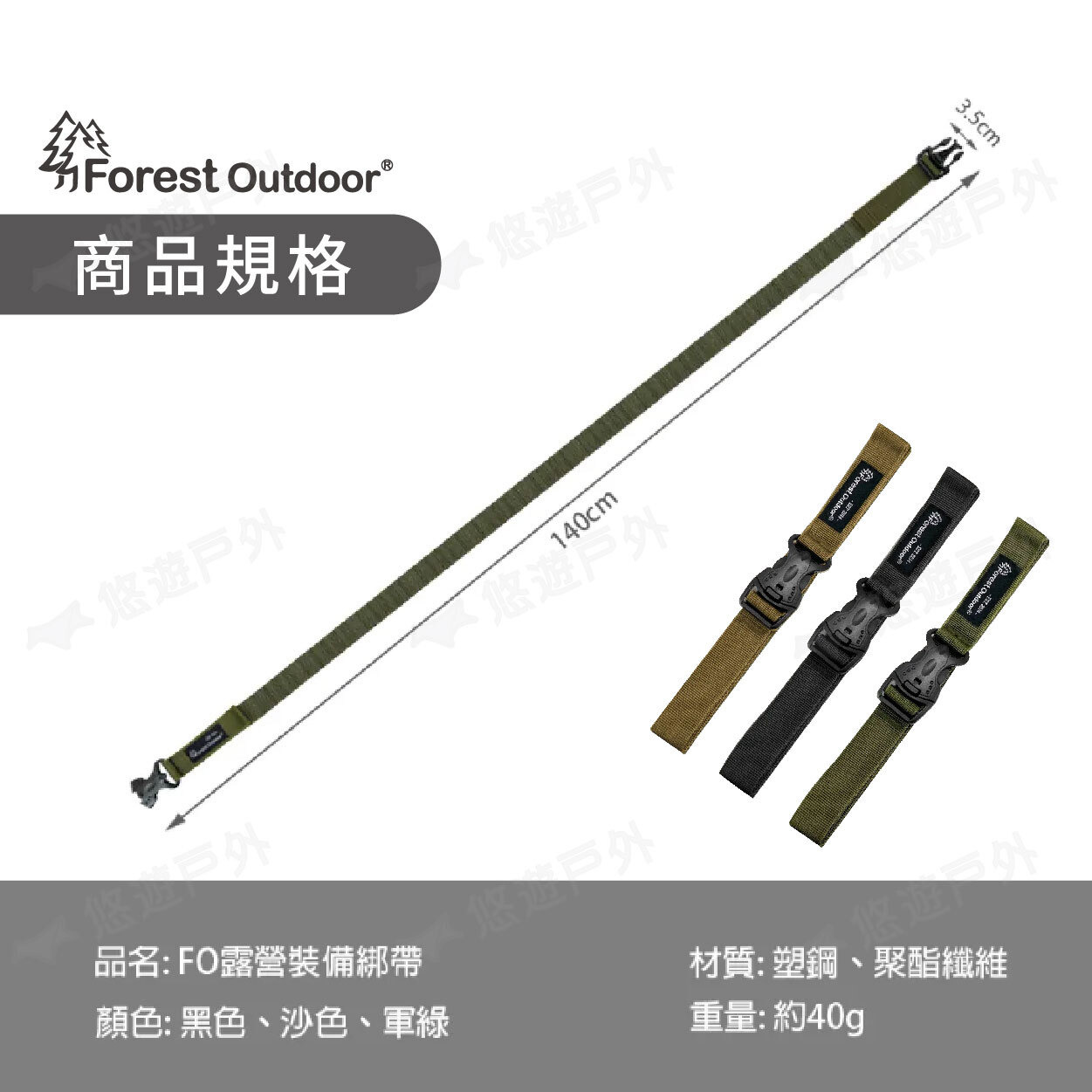 【悠遊戶外】Forest Outdoor FO 露營裝備綁帶(2入) 沙色.軍綠色.黑色
