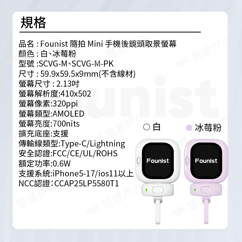 【Founist】隨拍 Mini 手機後鏡頭取景螢幕 白/冰莓粉 iPhone專用 極致輕巧 登山 露營 悠遊戶外