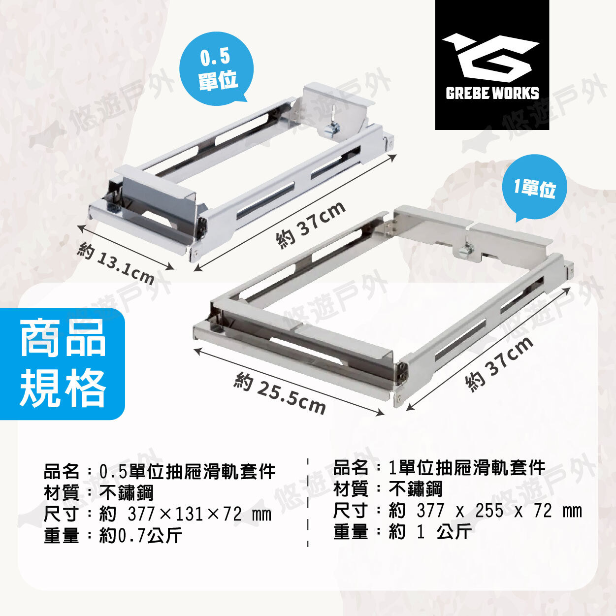 【悠遊戶外】GREBE WORKS IGT 0.5單位/1單位抽屜滑軌套件