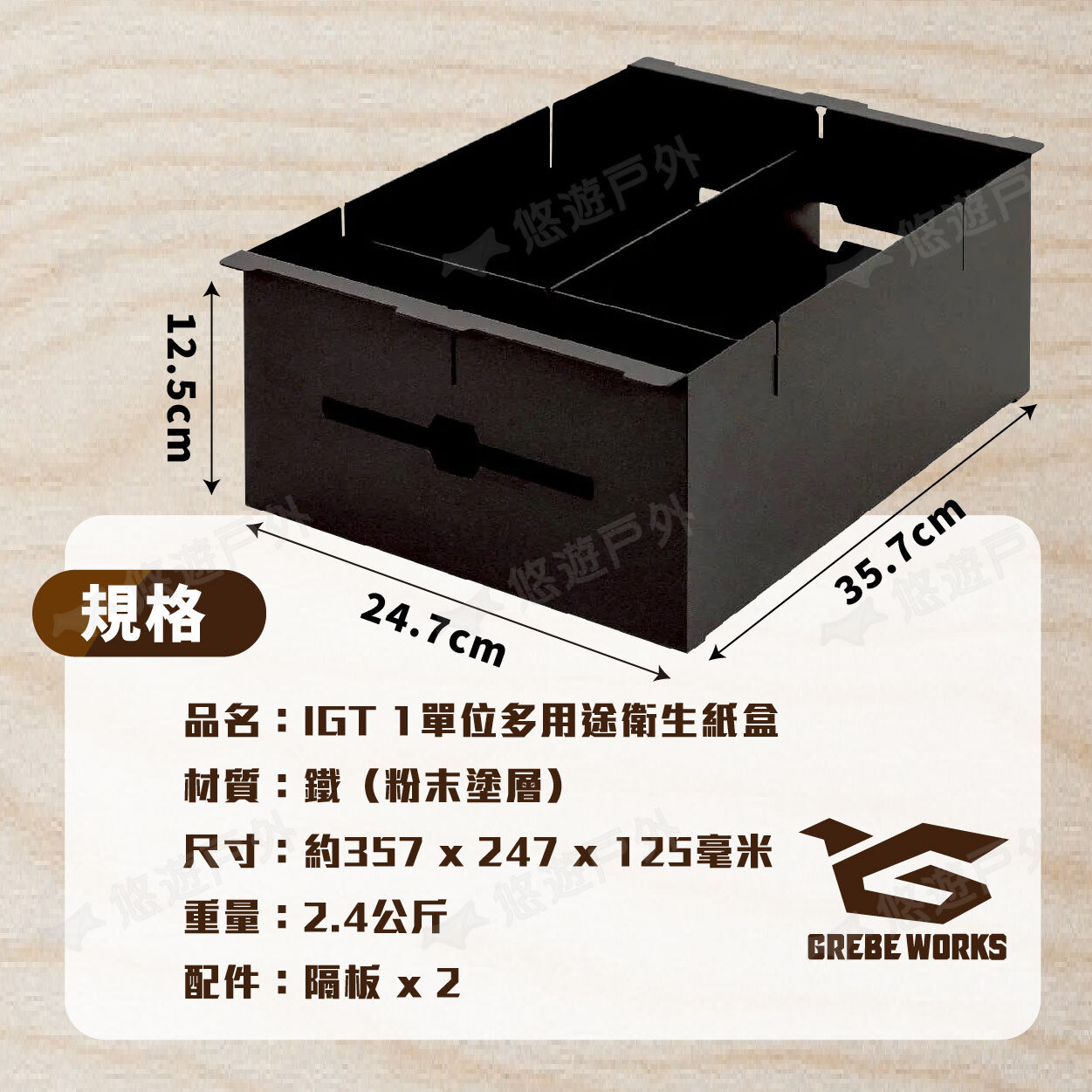 【悠遊戶外】GREBE WORKS IGT 1單位多用途衛生紙盒/黑