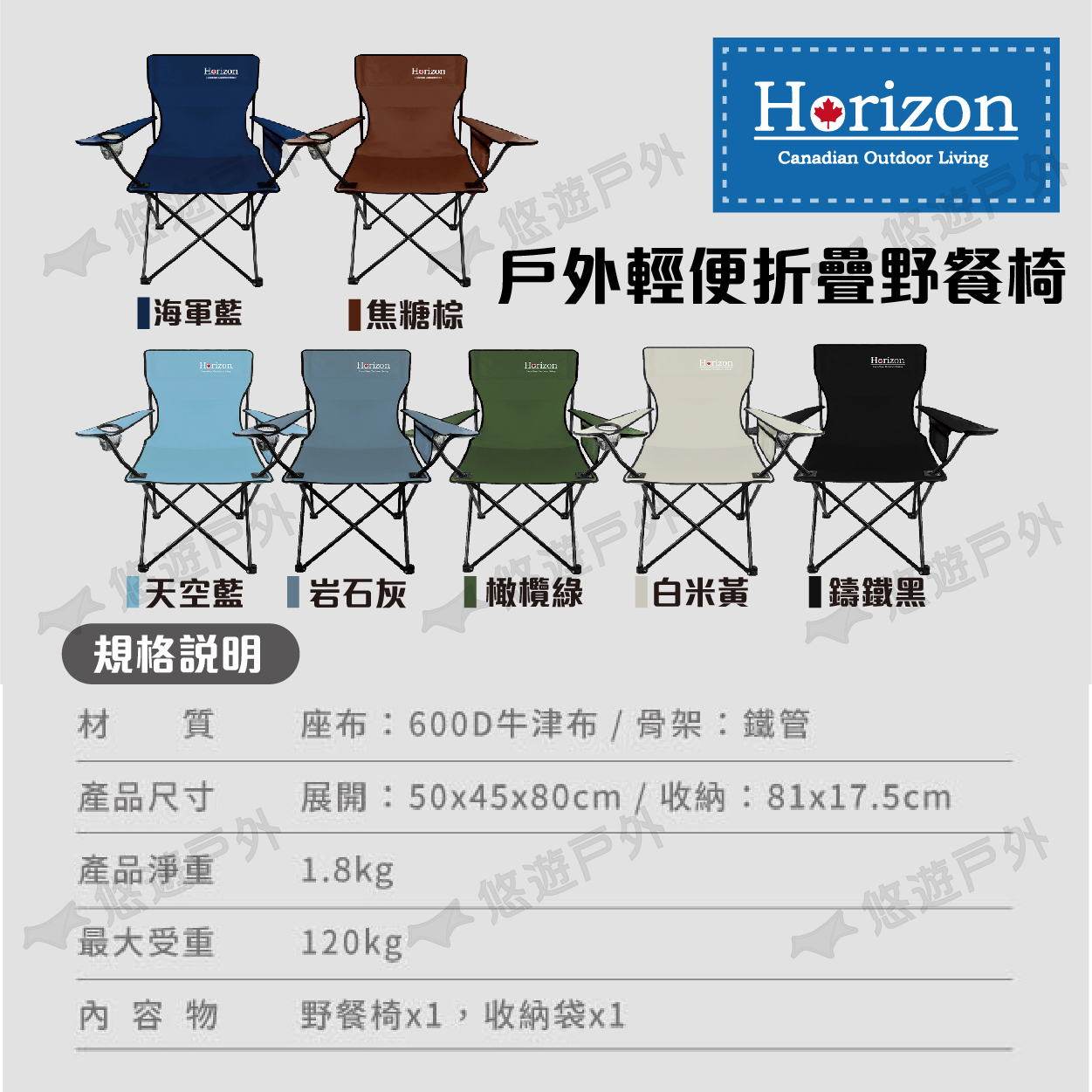 【悠遊戶外】Horizon 天際線 戶外輕便折疊野餐椅