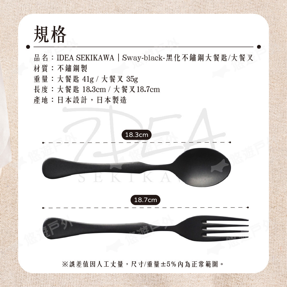 【IDEA SEKIKAWA】日本燕三條製 Sway-black黑化不鏽鋼大餐匙/大餐叉/小茶匙/點心叉 餐具 悠遊戶外