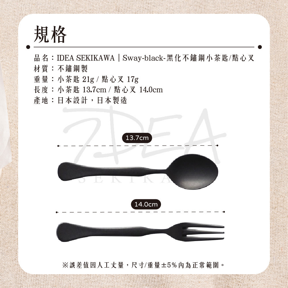 品名:IDEA SEKIKAWA|Sway-black-黑化不鏽鋼小茶匙/點心叉