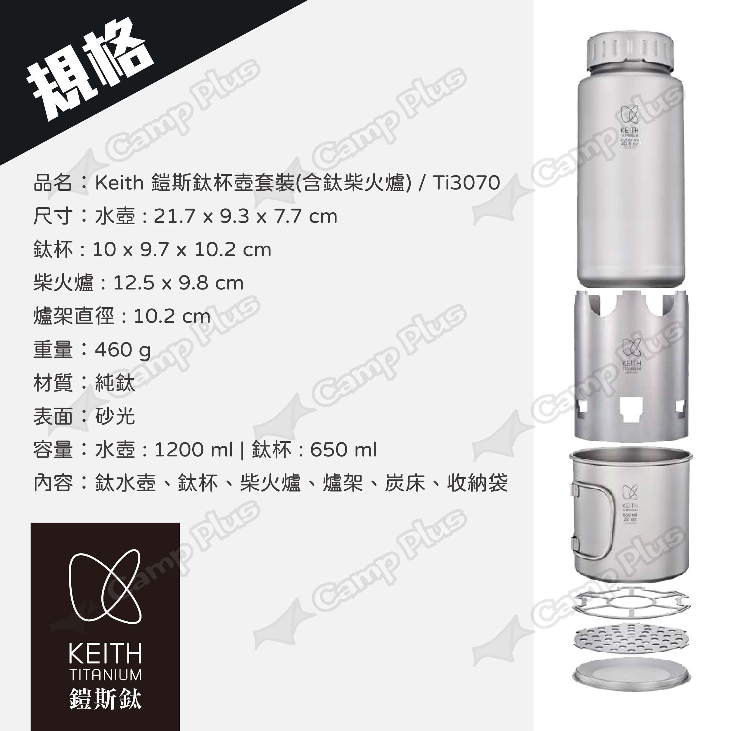 【悠遊戶外】Keith 鎧斯 鈦杯壺套裝(含鈦柴火爐) Ti3070