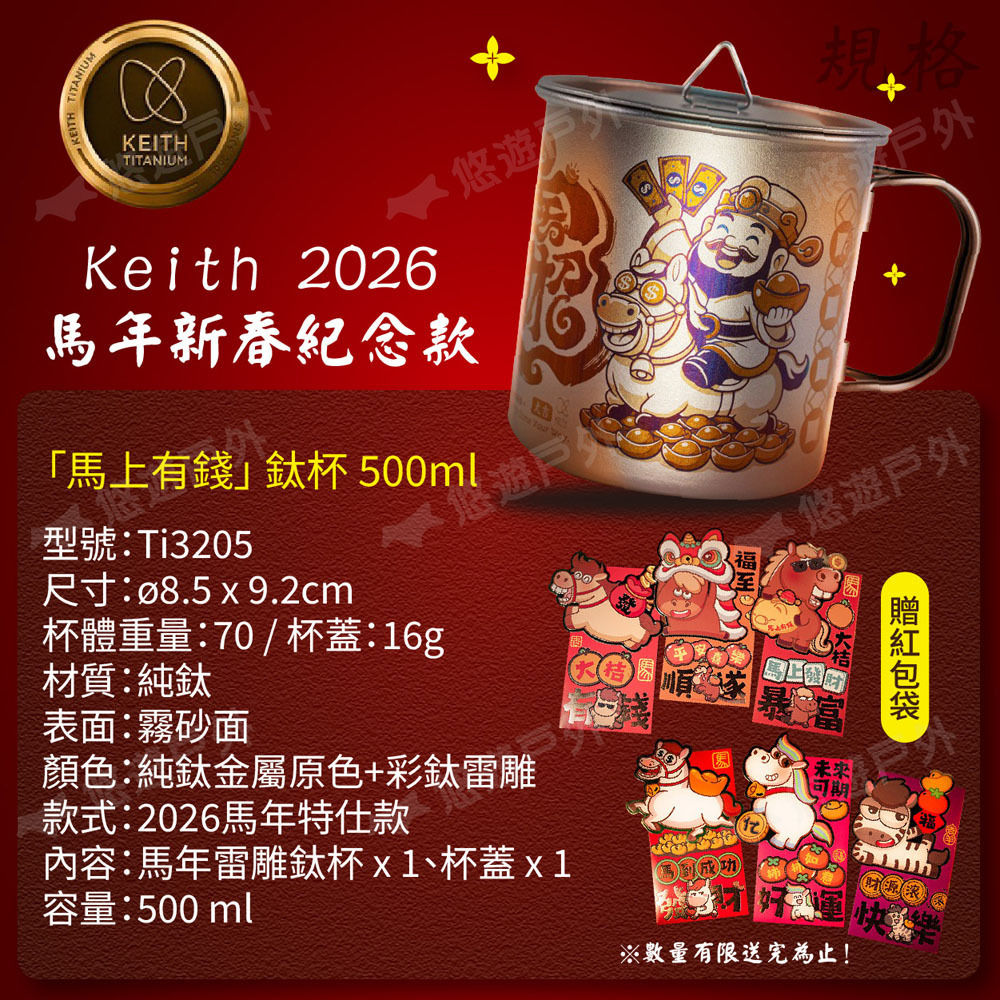 【悠遊戶外】Keith 鎧斯 馬年新春紀念款「馬上有錢」鈦杯500ml