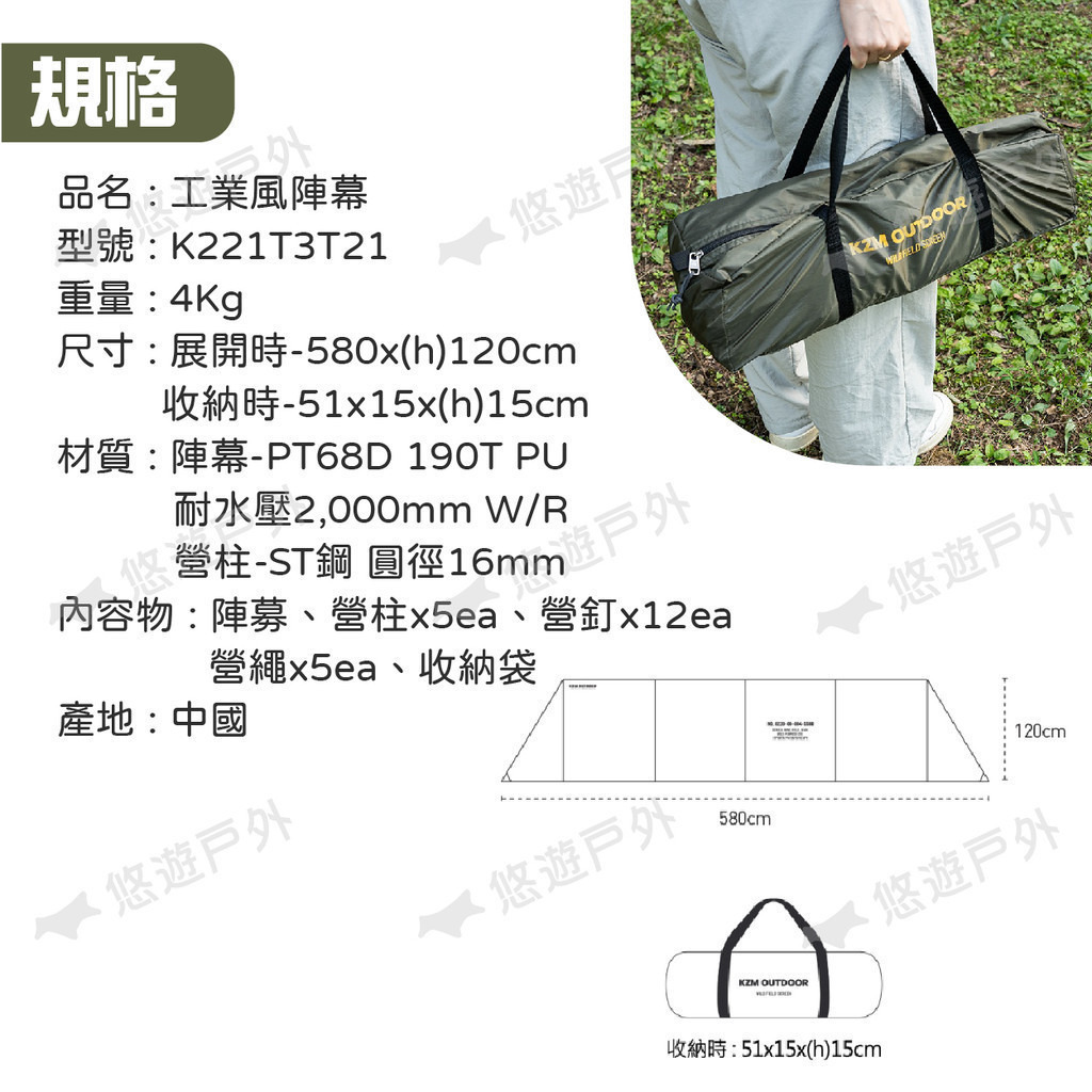 材質 : 陣幕-PT68D 190T PU 耐水壓2,000mm W/R / 營柱-ST鋼 圓徑16mm