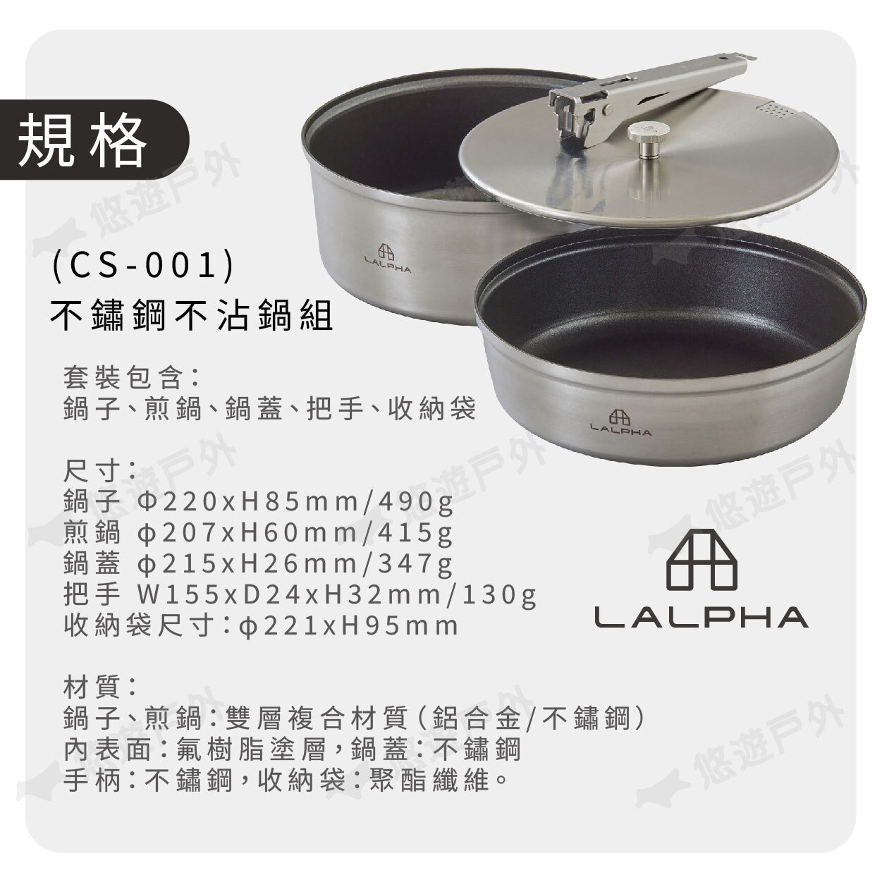 【悠遊戶外】LALPHA 不鏽鋼不沾鍋組 CS-001