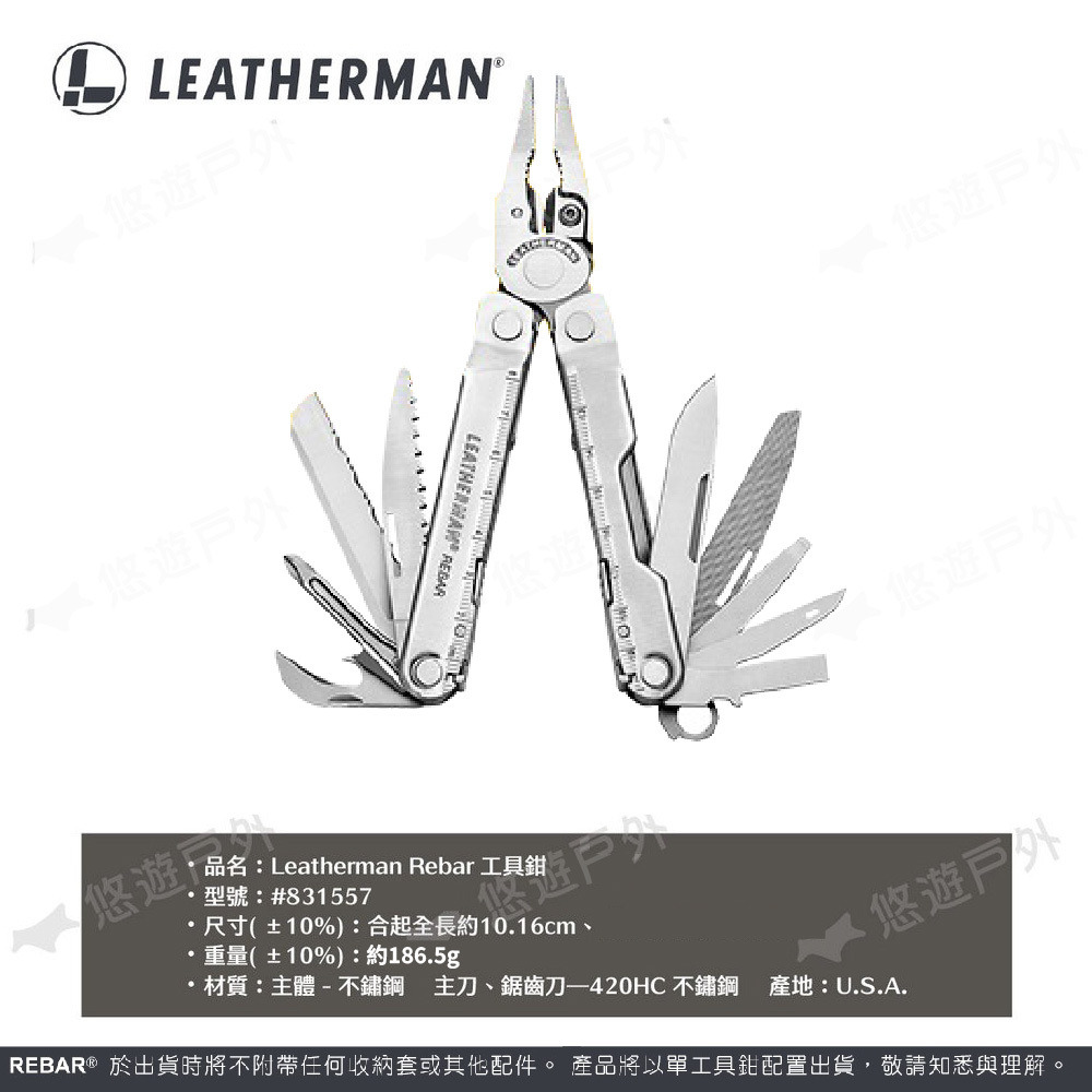 【LEATHERMAN】REBAR工具鉗/銀色 尖嘴鉗 剝線器 鋸齒刀 開罐器 螺絲起子 銼刀 露營 悠遊戶外